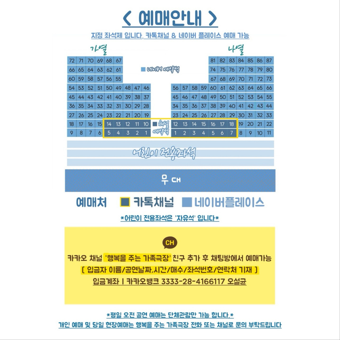 예매 방법 : 카카오 채널 채팅 / 네이버 플레이스 [행복을주는가족극장]