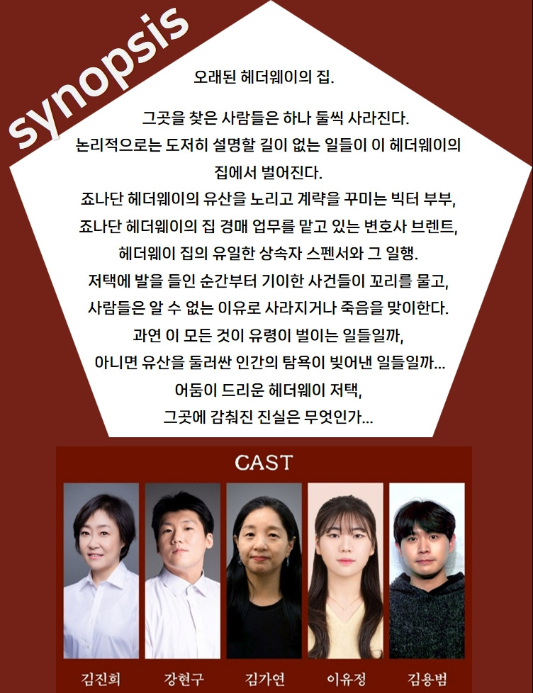 <광주소극장 축제 참가작> 연극 헤더웨이가의 유령 _ 2025.8.7~8.16 예술극장 통 작성자희땡이 ♪|작성시간25.07.21|조회수10 목록 댓글 0 글자크기 작게가 글자크기 크게가 다음검색 현재 게시글 추가 기능 열기 북마크 공유하기 신고 센터로 신고 댓글 댓글 0 댓글쓰기 답글쓰기 댓글 리스트