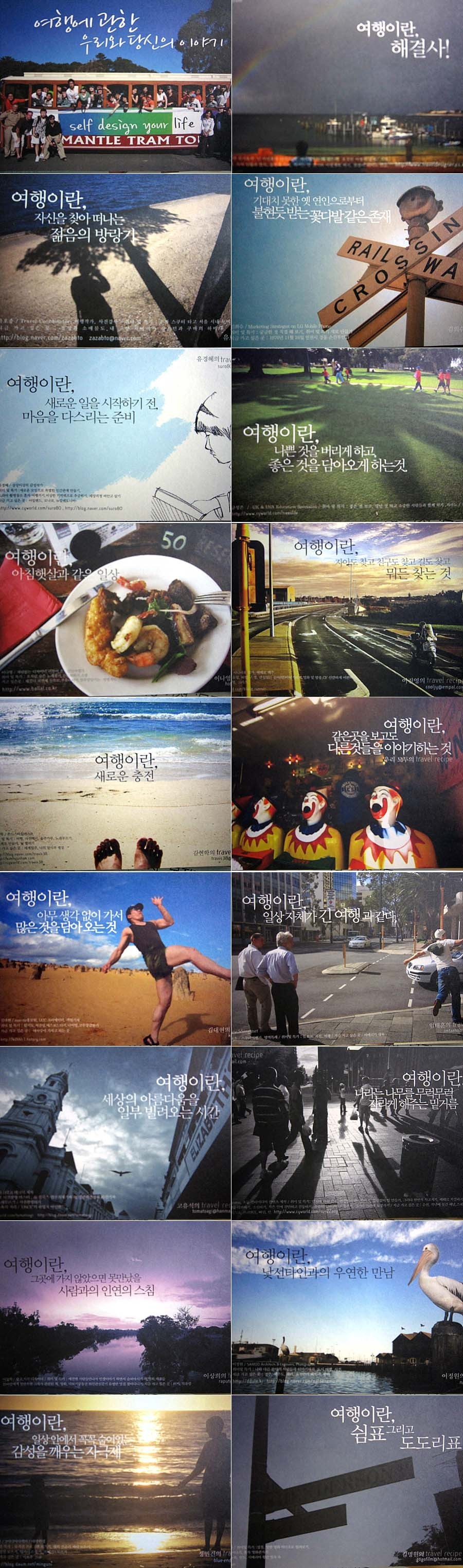 여행이란 일상에서 꼭꼭 숨어있는 감성을 깨우는 자극제이자 낯선 곳과 낯선 사람과의 인연을 맺는 것이며, 여행이란 ‘영혼의 목욕탕’과 같습니다 일상으로 찌든 내 마음과 내 영혼을 벗겨내어 속살이 다시 보이게 하는 그런 것이 바로 여행이 주는 선물이라고 생각합니다.