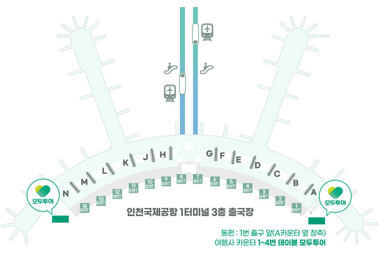· 장소 : 인천국제공항 1터미널 3층 출국장 1번 출구 앞(A카운터 옆 창측) 여행사카운터 1~4번 테이블 "모두투어"