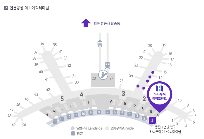 장소 : 인천공항 제1여객터미널 3층 출국장 동편 1번 출입구 하나투어 21-24 테이블