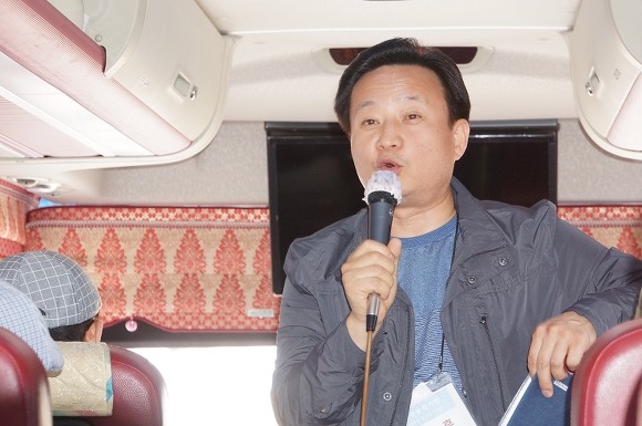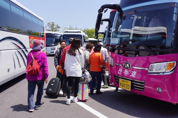 제주공항에 대기 중인 삼호관광버스(기사: 이승갑)에 승차