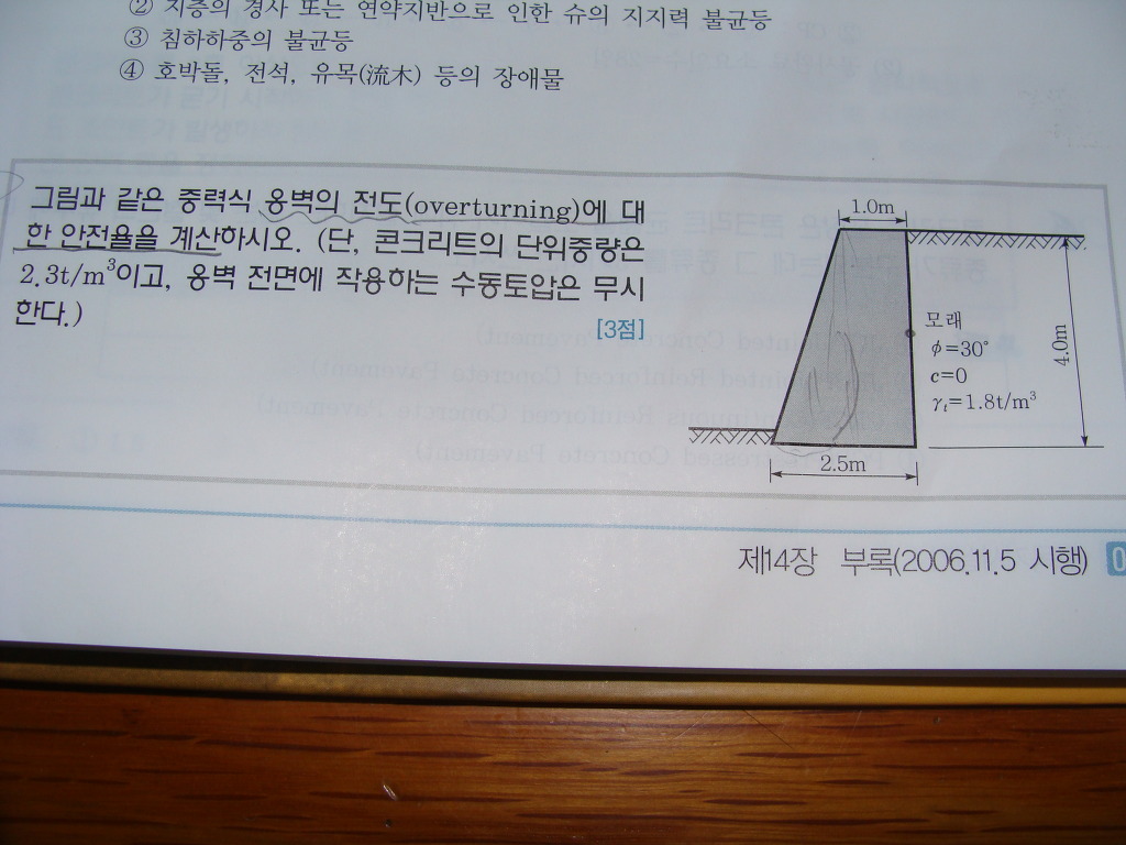작성자tanosii 작성시간 11.10.27 작용력/저항력 즉 자중과 토압 일부분이 저항력이 되고 작용력은 옆에서 작용하는 토압 되겄심다 즉 넘어트리려는힘과 안넘어지려는힘의 싸움