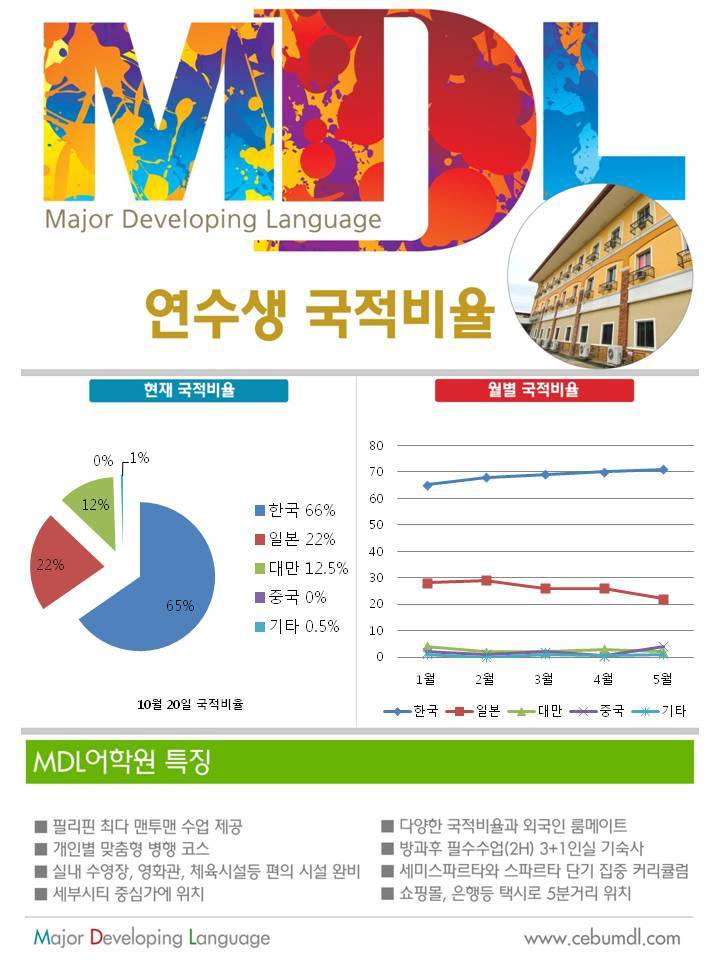 [필리핀어학연수-MDL어학원] 2014년 10월 20일 국적비율 및 공실현황을 알려드립니다.