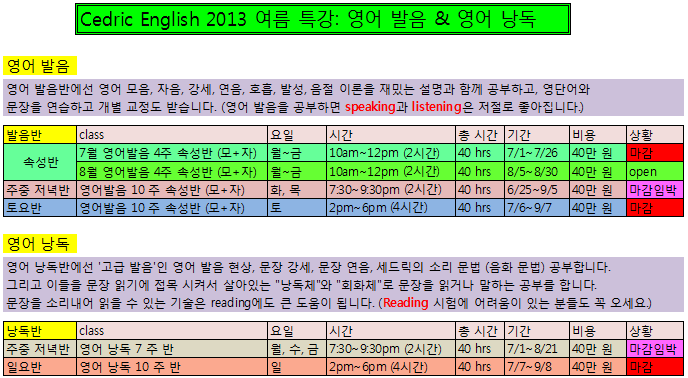 02) 568-0553 (월~금, 10~7 ) CedricEnglish@gmail.com