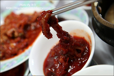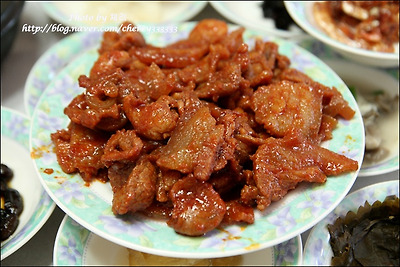 강씨가 수양 딸(62)과 함께 차려 낸 한식 상에는 80여 가지의 반찬이 올랐다. 자태가 하도 화려해 선뜻 손을 내밀기가 아까울 정도다. 쇠고기만 해도 불고기·떡갈비·생고기·육회·천엽 다섯 가지나 된다. 장아찌는 9가지, 젓갈류는 10가지가 나온다. 가짓수가 많아 음식 접시는 아래위 두 겹으로 포개진다. 위층 고기류는 강씨가 담근 동동주와 함께 먼저 먹는다. 그리고 밥상 위에 깔린 요리는 밥과 함께 먹는다. 적어도 2시간 정도의 여유를 갖고 음식 하나하나를 음미해야 제 맛을 안다.