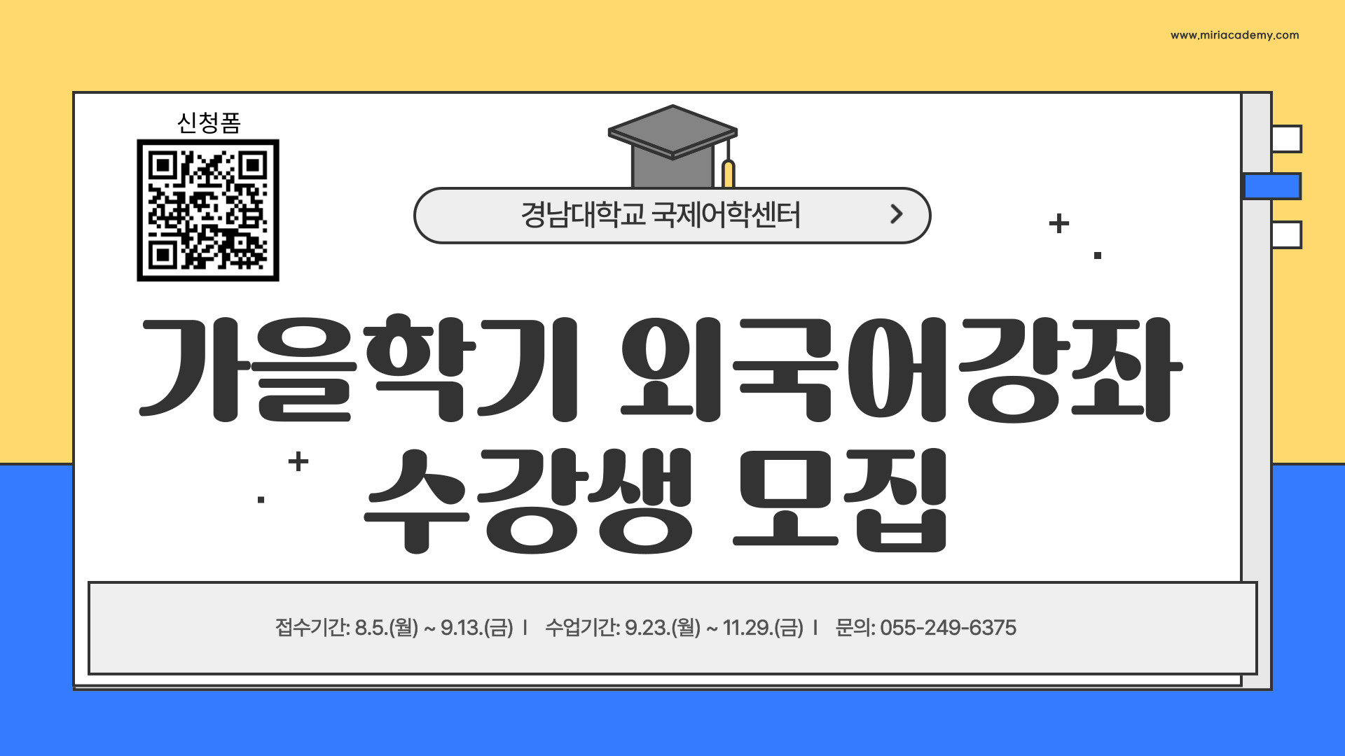 2024학년도 가을학기 외국어강좌 오픈 예정! 작성자실버|작성시간24.08.06|조회수63 목록 댓글 0 글자크기 작게가 글자크기 크게가 다음검색 현재 게시글 추가 기능 열기 북마크 공유하기 신고 센터로 신고 댓글 댓글 0 댓글쓰기 답글쓰기 댓글 리스트