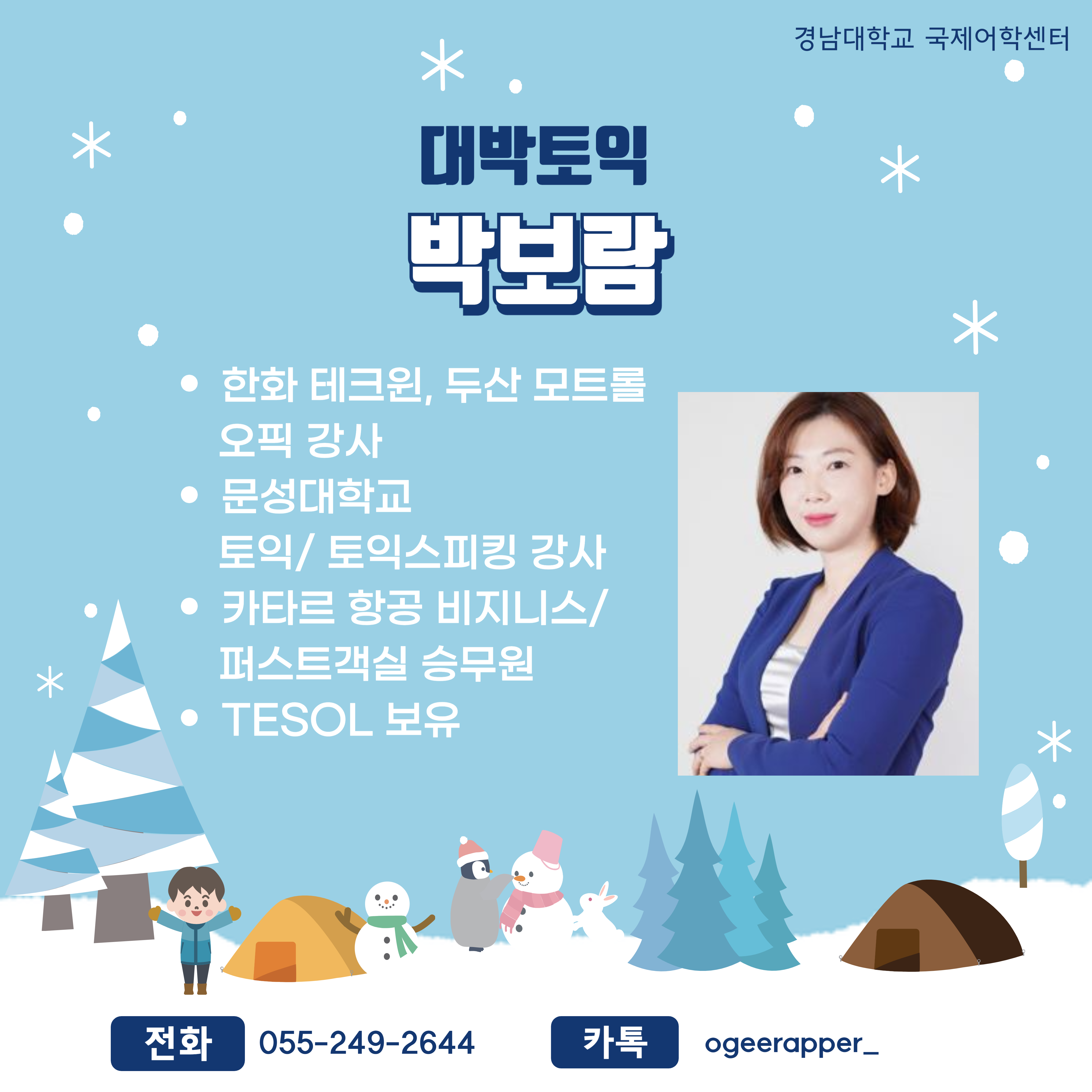 [2024년 겨울학기] 대박토익/대박토스 박보람 강사 소개 작성자실버|작성시간24.10.31|조회수114 목록 댓글 0 글자크기 작게가 글자크기 크게가 다음검색 현재 게시글 추가 기능 열기 북마크 공유하기 신고 센터로 신고 댓글 댓글 0 댓글쓰기 답글쓰기 댓글 리스트