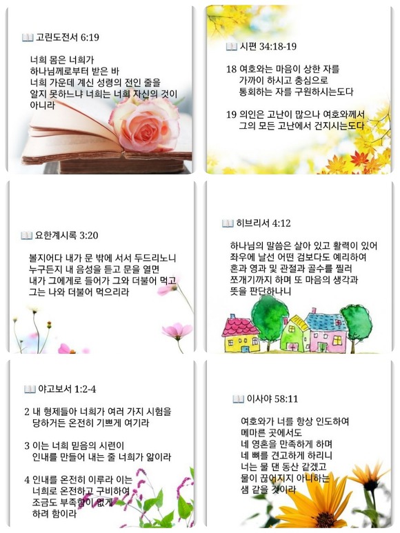 그 외 감동받은 구절이나 전도할 때 사용할 수 있는 성구를 찾아 앱에 저장하며 반복하고 있는데, 놀라운 것은 전에는 한 구절 외우는 데도 시간이 많이 걸리고 힘들었다면, 지금은 그보다 쉽게 말씀이 내 안으로 들어오는 것이다. 그렇지만 외우는 것보다 복습이 중요하기에 이제는 혼자 있는 시간이나 걸어갈 때도 암송을 하고 있다. 심지어 헬스장에서 훌라후프를 돌리는 그 짧은 시간에도 복습하고 있으니 우습다.