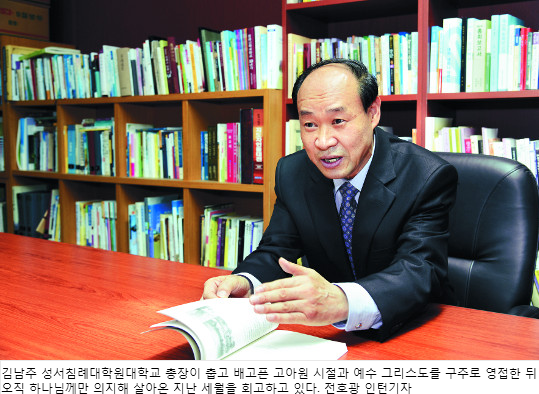 김남주 성서침례대학원대학교 총장이 춥고 배고픈 고아원 시절과 예수 그리스도를 구주로 영접한 뒤 오직 하나님께만 의지해 살아온 지난 세월을 회고하고 있다. 전호광 인턴기자참 많이 울었다. 배가 고파서 울었고 너무 추워서 울었다. 외로워서 서러워서 보고파서 너무너무 힘들어서 울었다. 그러나 이제는 하나님 은혜에 감사해서 자꾸만 눈물이 난다.