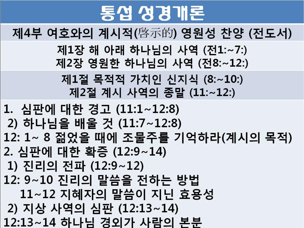 제4부 여호와의 계시적(啓示的) 영원성 찬양 (전도서)