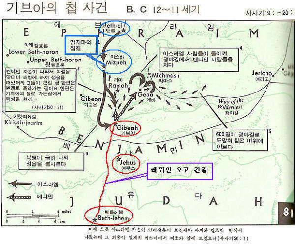 * **베냐민 기브아의 범죄 (19:1~26):** 레위인의 첩이 기브아 사람들에게 능욕당해 죽음에 이르는 사건은 소돔과 고모라에 비견될 만한 극심한 도덕적 타락을 드러냅니다. 이는 하나님의 백성이 얼마나 깊은 죄악의 수렁에 빠졌는지를 여실히 보여줍니다.
