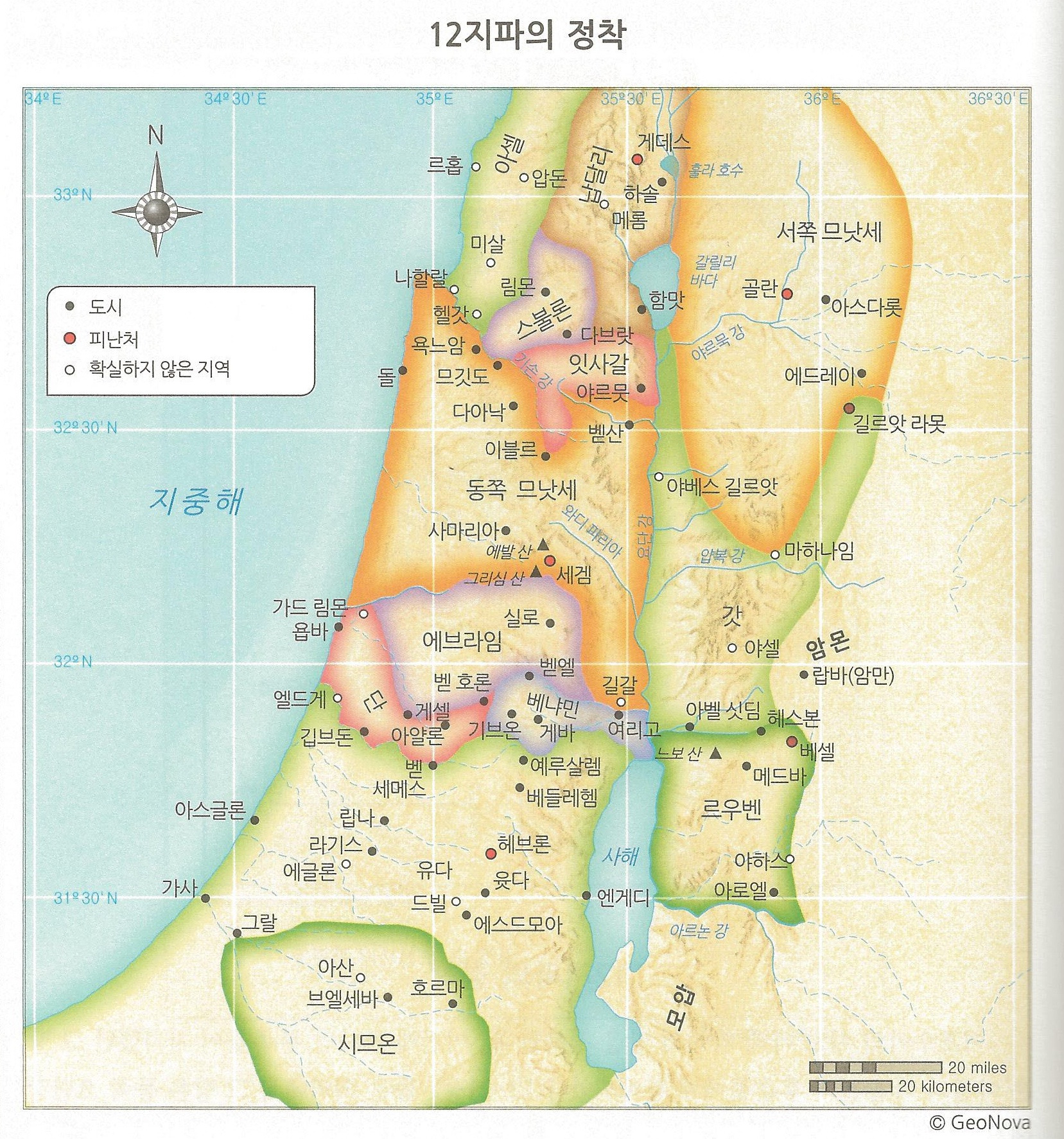 * **도피성과 레위지파 성읍 (20:∼21:):**