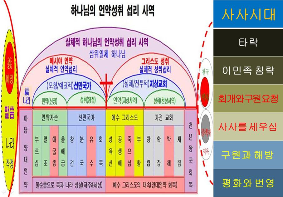 성경의 역사적 흐름 속에서 여호와의 언약 성취 섭리는 다음과 같이 전개됩니다.