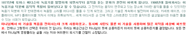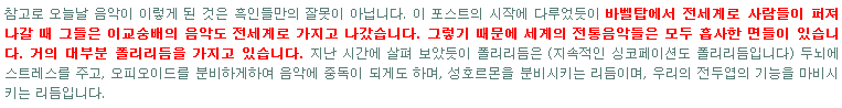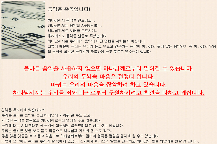문제는 어떠한 음악을 우리가 많이 접하고 살아 가는가에 따라서 지대한 영향을 끼치지요