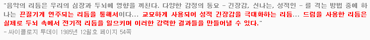 지난번에 올린 글에서 멜로디,랭귀지,리듬에 대하여 말하였기에 오늘은 음악에 영향을 주는