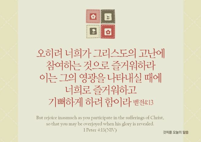 말씀/베드로전서 4장 12~13절 말씀입니다.