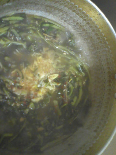 찹쌀풀을 쑤어서 액젓으로 간을 맞추고