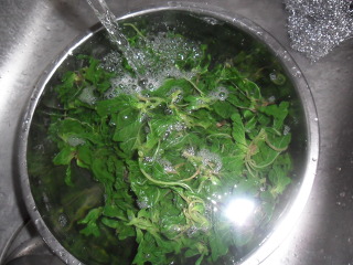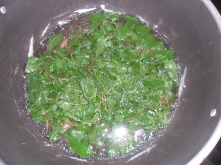 남은 참비듬 나물을 깨끗이 씻어서 팔팔 끓는물에 삶는다