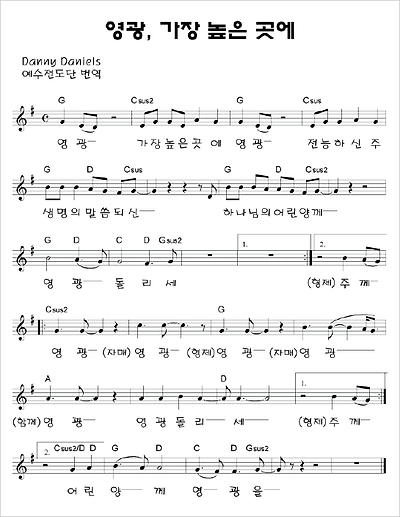 [스크랩] 영광 가장 높은 곳에 [예수전도단 2003라이브] 작성자김호수|작성시간09.03.07|조회수1,108 목록 댓글 0 글자크기 작게가 글자크기 크게가 영광가장높은곳에 / 영광가장높은곳에영광 악보 영광 가장 높은 곳에 영광전능하신 주 생명의 말씀되신 하나님의 어린양께 영광 돌리세 영광 가장 높은 곳에 영광전능하신 주 생명의 말씀되신하나님의 어린양께 영광 돌리세주께 영광 영광 영광 영광 영광 영광돌리세주께 영광 영광 영광 영광 영광 영광돌리세어린양께 영광을 다음검색 스크랩 원문 : 오직 주만 현재 게시글 추가 기능 열기 북마크 공유하기 신고 센터로 신고 댓글 댓글 0 댓글쓰기 답글쓰기 댓글 리스트
