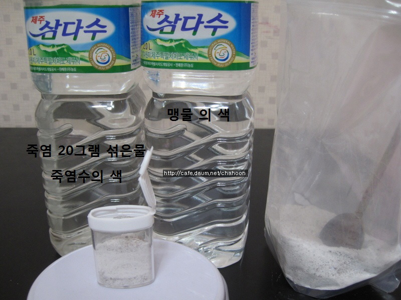 1. 생수 2L에 죽염 20g 을 탄다. (사진참조)