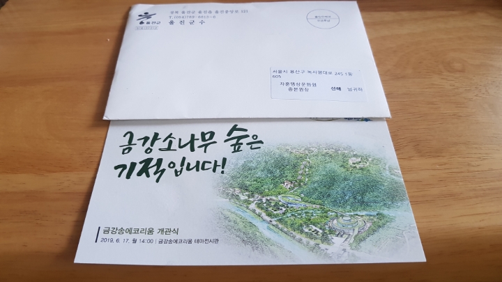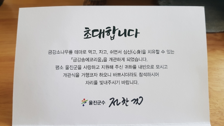 오늘 울진군 '금강송 에코리움" 개관식 초대장이 와서 울진을 갑니다