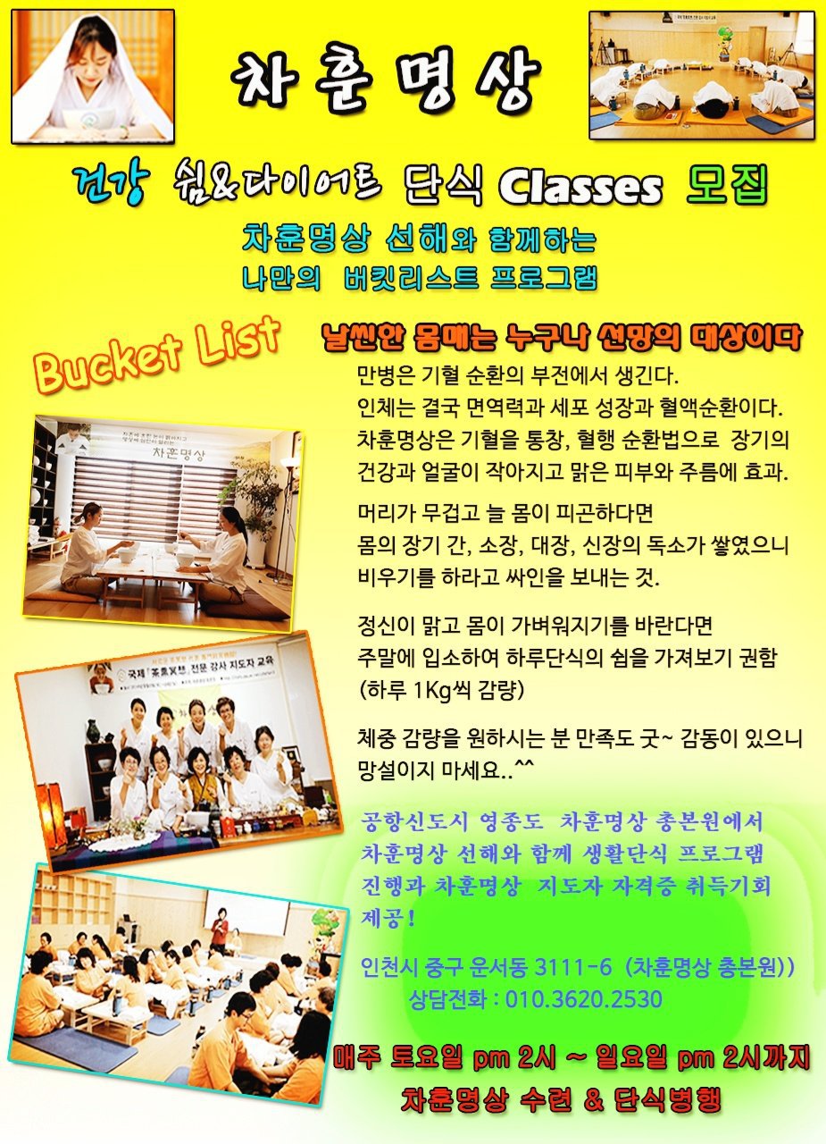 차훈명상 회춘 프로그램 11월부터 진행 ] 작성자선해仙海|작성시간17.10.21|조회수45 목록 댓글 0 글자크기 작게가 글자크기 크게가 [차훈명상 몸 다이어트와피부 회춘 프로그램 진행을 11월부터 시작합니다 ] 다음검색 현재 게시글 추가 기능 열기 북마크 공유하기 신고 센터로 신고 댓글 댓글 0 댓글쓰기 답글쓰기 댓글 리스트