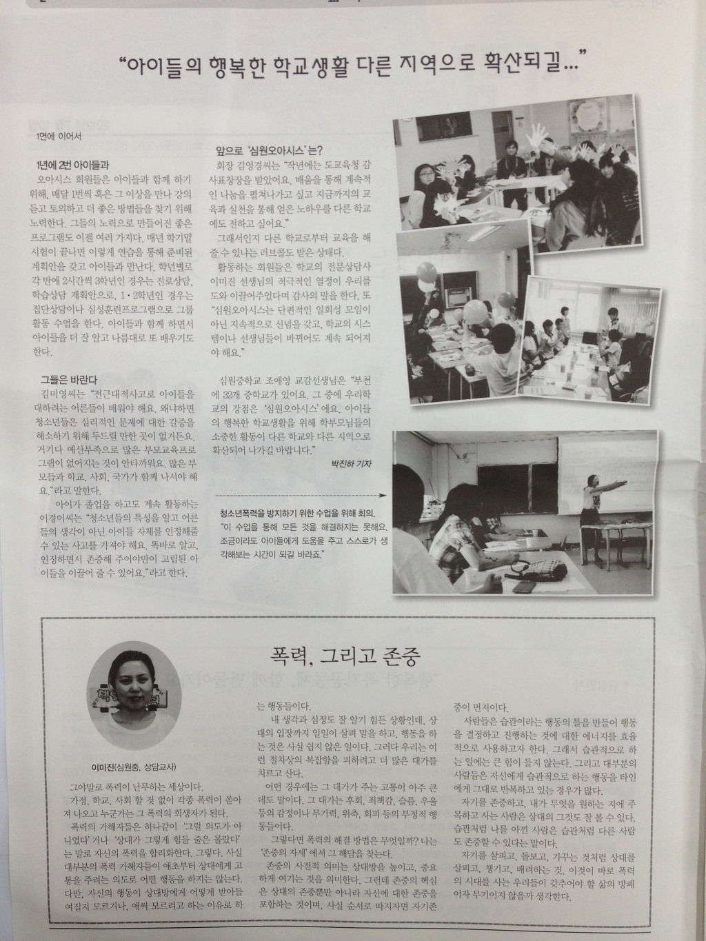 부천심원중학교 신문에요.