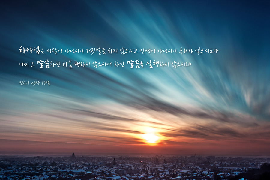 “하나님은 사람이 아니시다. 거짓말을 하지 아니하신다. 사람의 아들이 아니시니, 변덕을 부리지도 아니하신다. 어찌 말씀하신 대로 하지 아니하시랴? 어찌 약속하신 것을 이루지 아니하시랴?” (19절)