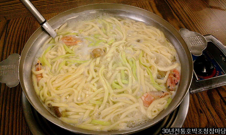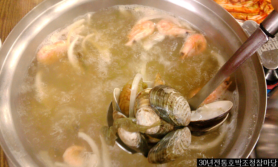 이렇게 생합과 미더덕 새우를 듬뿍넣고 국물을 내고있습니다. 해물에서 우러나온 국물이 진해서 보기에도 맛있어보입니다.