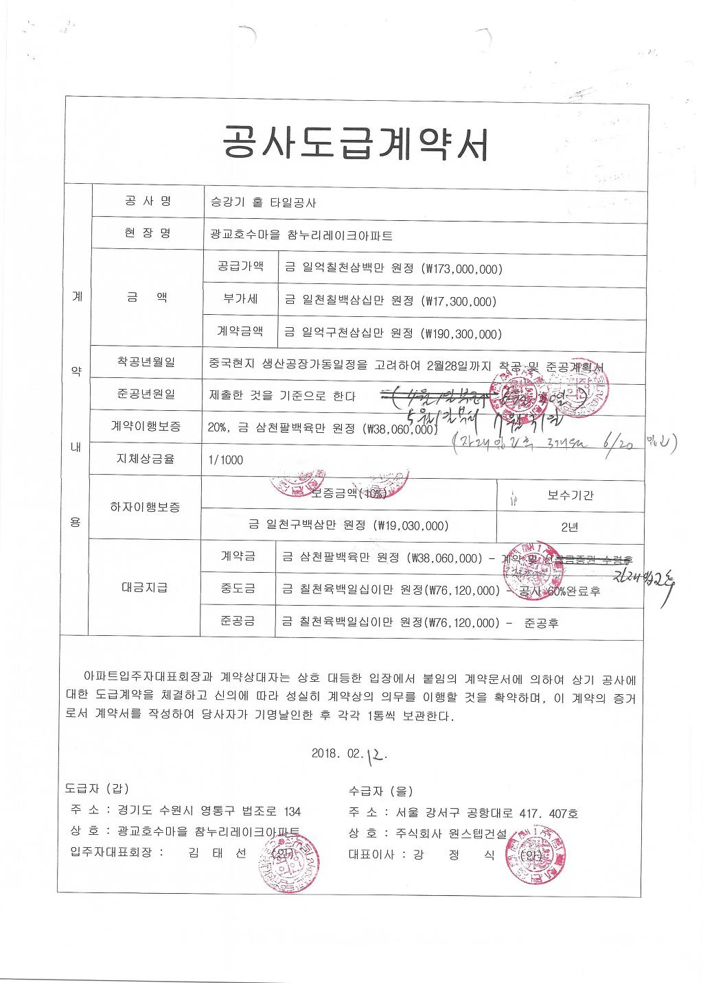3기회장님이 계약서를 수정하셨으리라 생각됩니다
