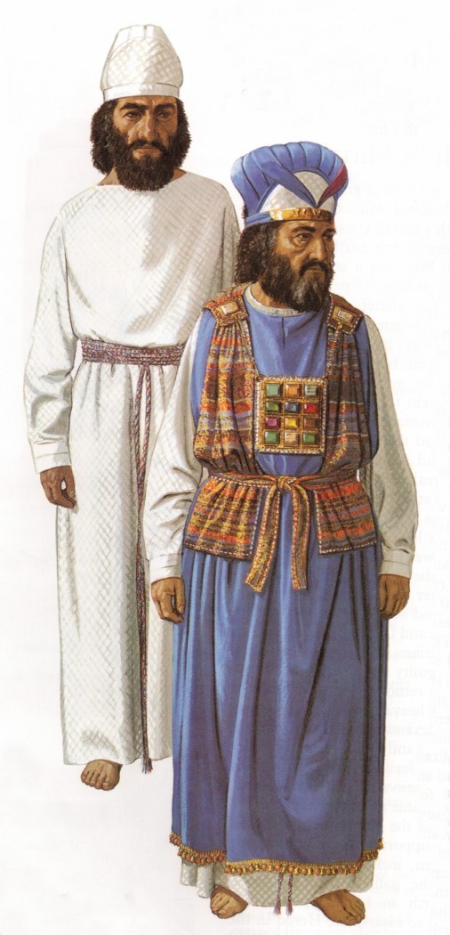 일반 제사장과 대 제사장, 일반 제사장은 아마포로 만든 옷과 모자를 썼다.