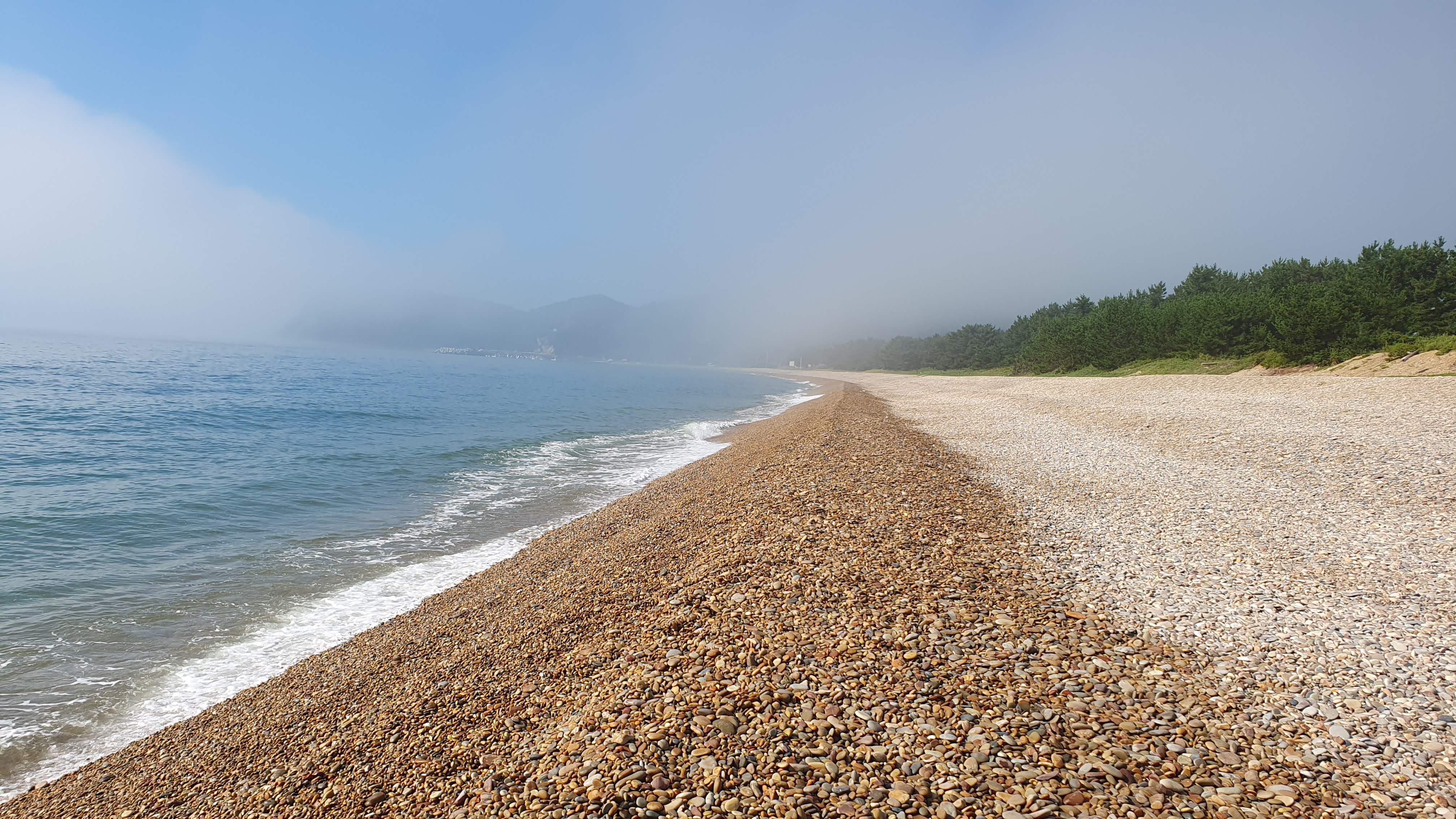 콩알을 뿌려놓은 듯한 독특한 해안으로 2km에 걸쳐 콩처럼 둥글둥글한 돌멩이들로 이루워 져 있다