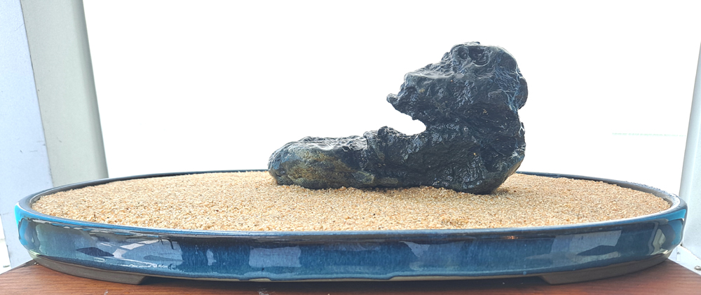 재와 같은 빛깔의 바탕에 진한 갈색의