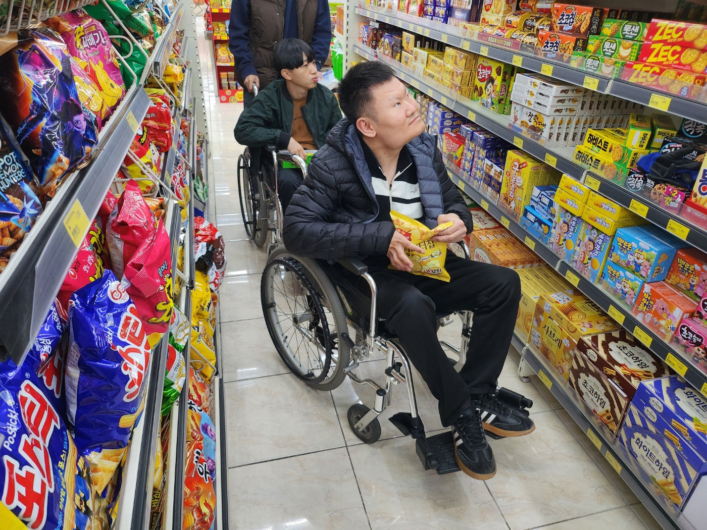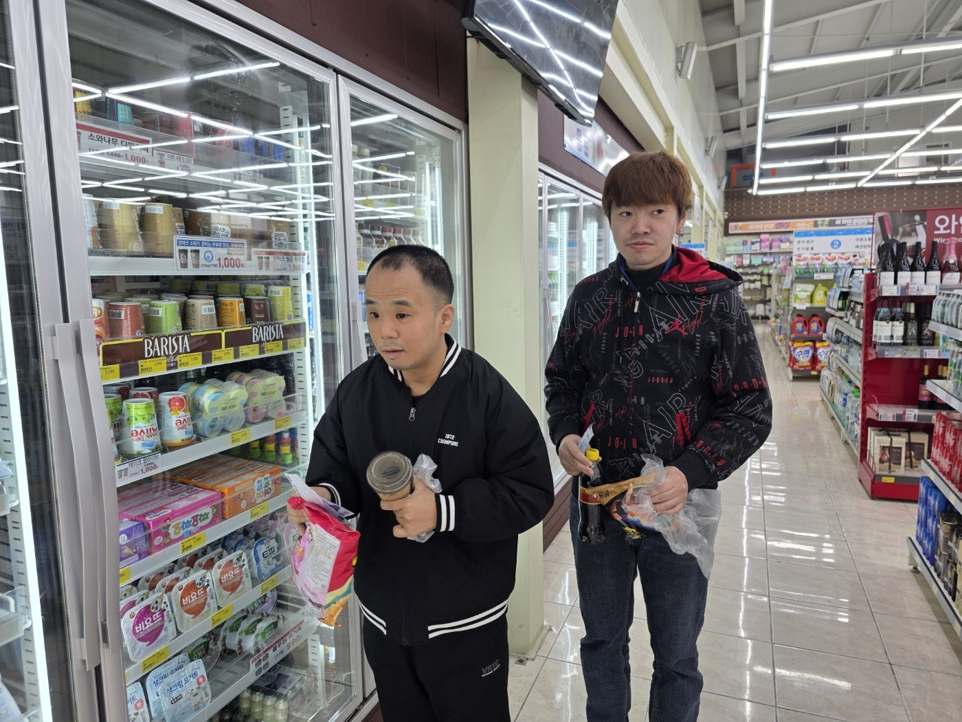 먹고자 하는 과자를 보고 음료도 이리저리보고~