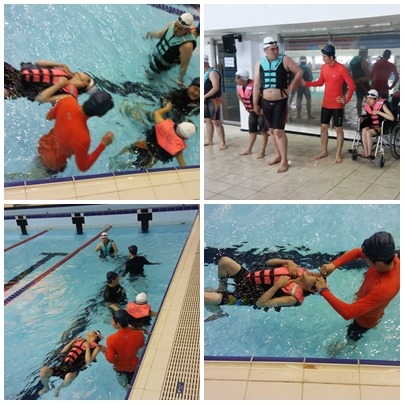 성준씨는 선생님이 잡아주셔서 부력을 이용해 천천히 이동해 봐요~~