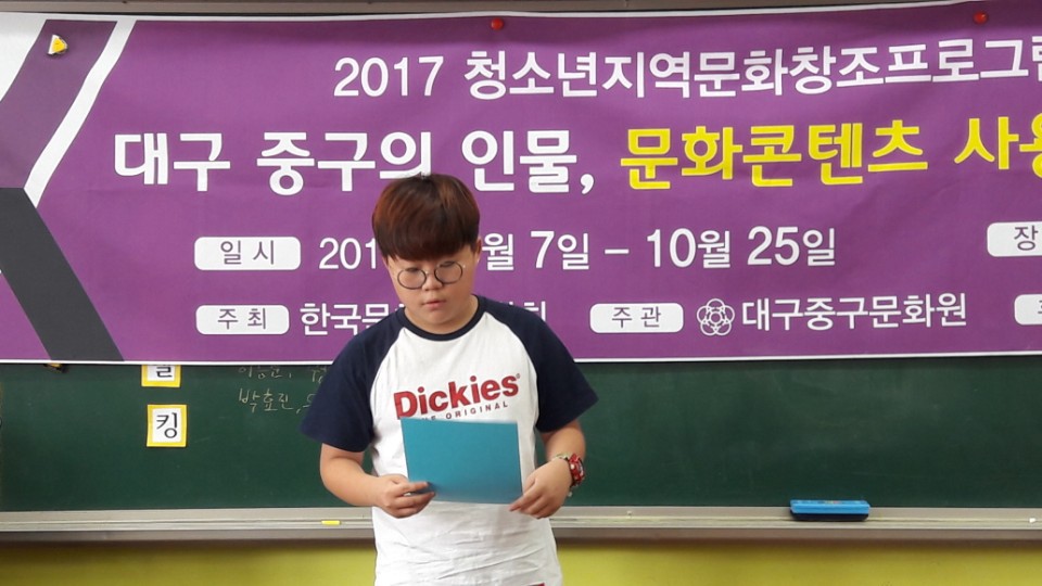 2017년 6월 7일~10월 25일(청소년지역문화창조프로그램지원사업-대구 중구의 인물, 문화콘텐츠 사용설명서)-문학,미술,음악