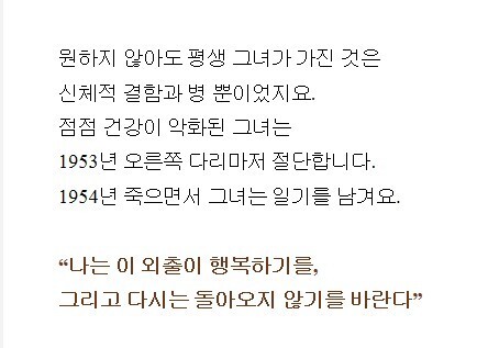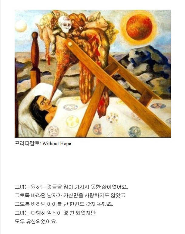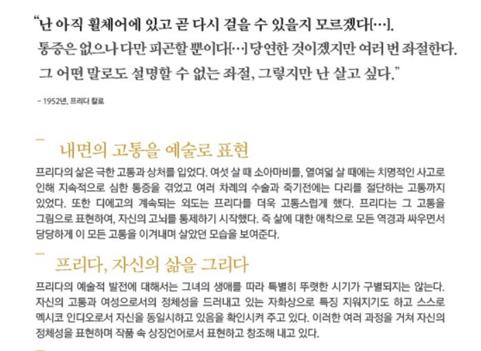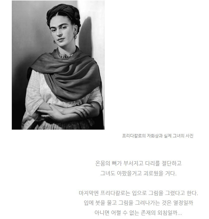 그녀는 그림을 통해 자신의 고통을 진솔하게 표현했어요.