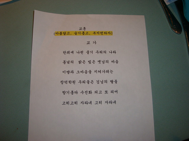 우리는 우리의 창덕마크와 교훈과 교가를 영원히 잊을 수가 없습니다!!!