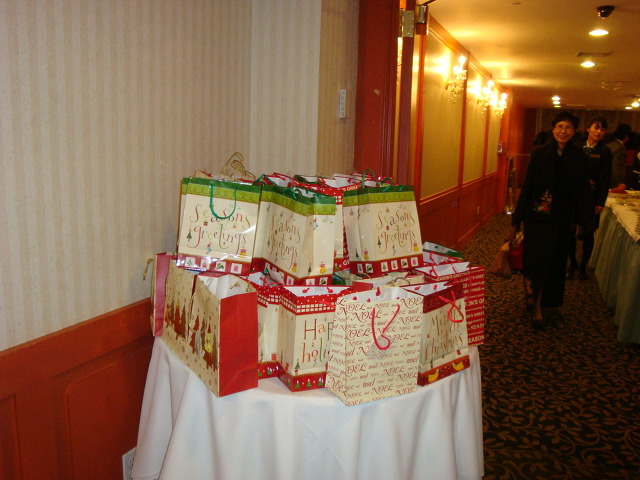 선배님께서 기증해주시고 준비하신 많은 상품들 (진주목걸이, 코트, 수트, 바디샴푸,텔레비죤등등...)