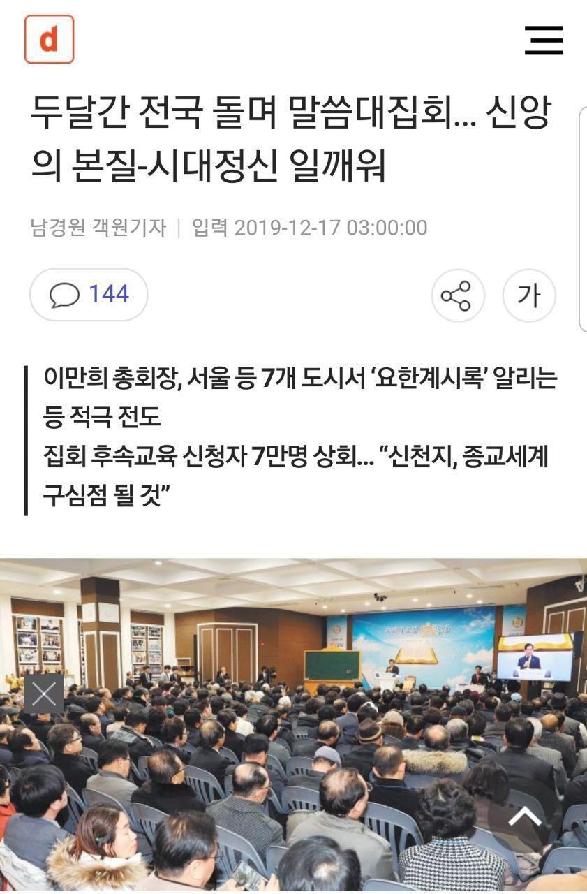 10만 수료식-전국 말씀대집회… “2019년은 신천지예수교회 대변혁의 해”