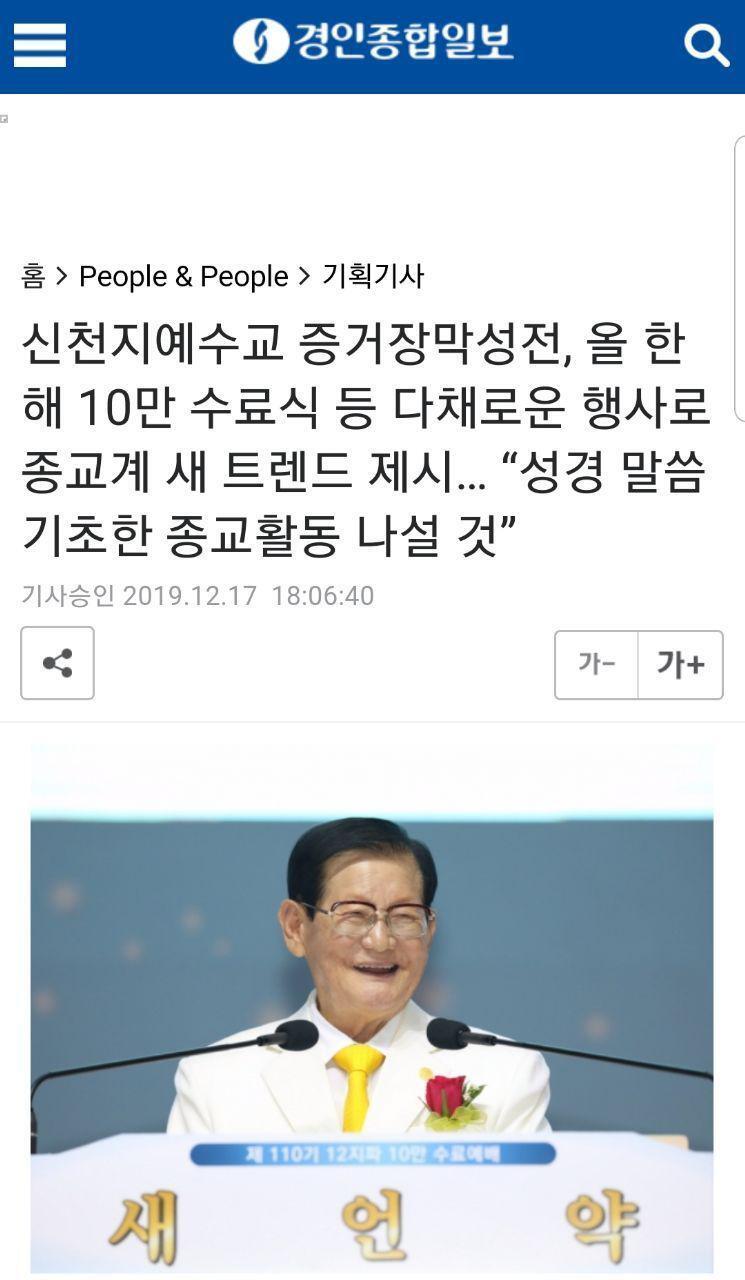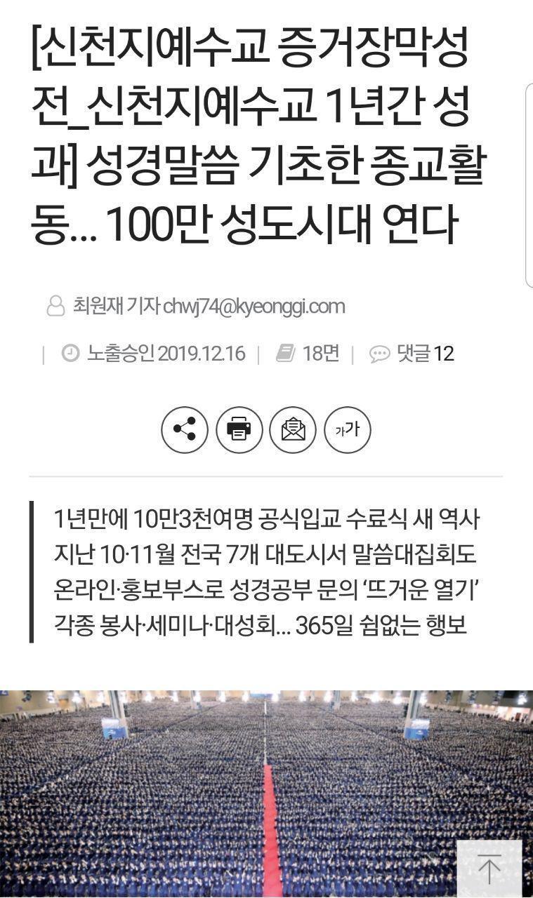 [신천지예수교 증거장막성전_신천지예수교 1년간 성과] 성경말씀 기초한 종교활동… 100만 성도시대 연다