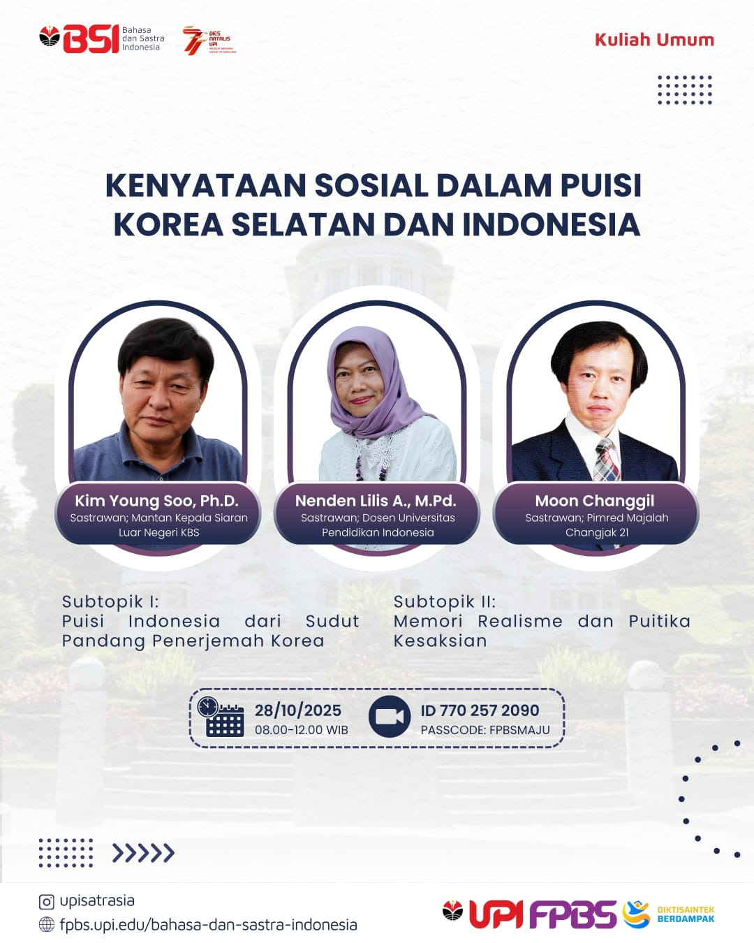 KENYATAAN SOSIAL DALAM PUISI KOREA SELATAN DAN INDONESIA_20251026 작성자편집실|작성시간25.10.27|조회수1 목록 댓글 0 글자크기 작게가 글자크기 크게가 다음검색 현재 게시글 추가 기능 열기 북마크 공유하기 신고 센터로 신고 댓글 댓글 0 댓글쓰기 답글쓰기 댓글 리스트