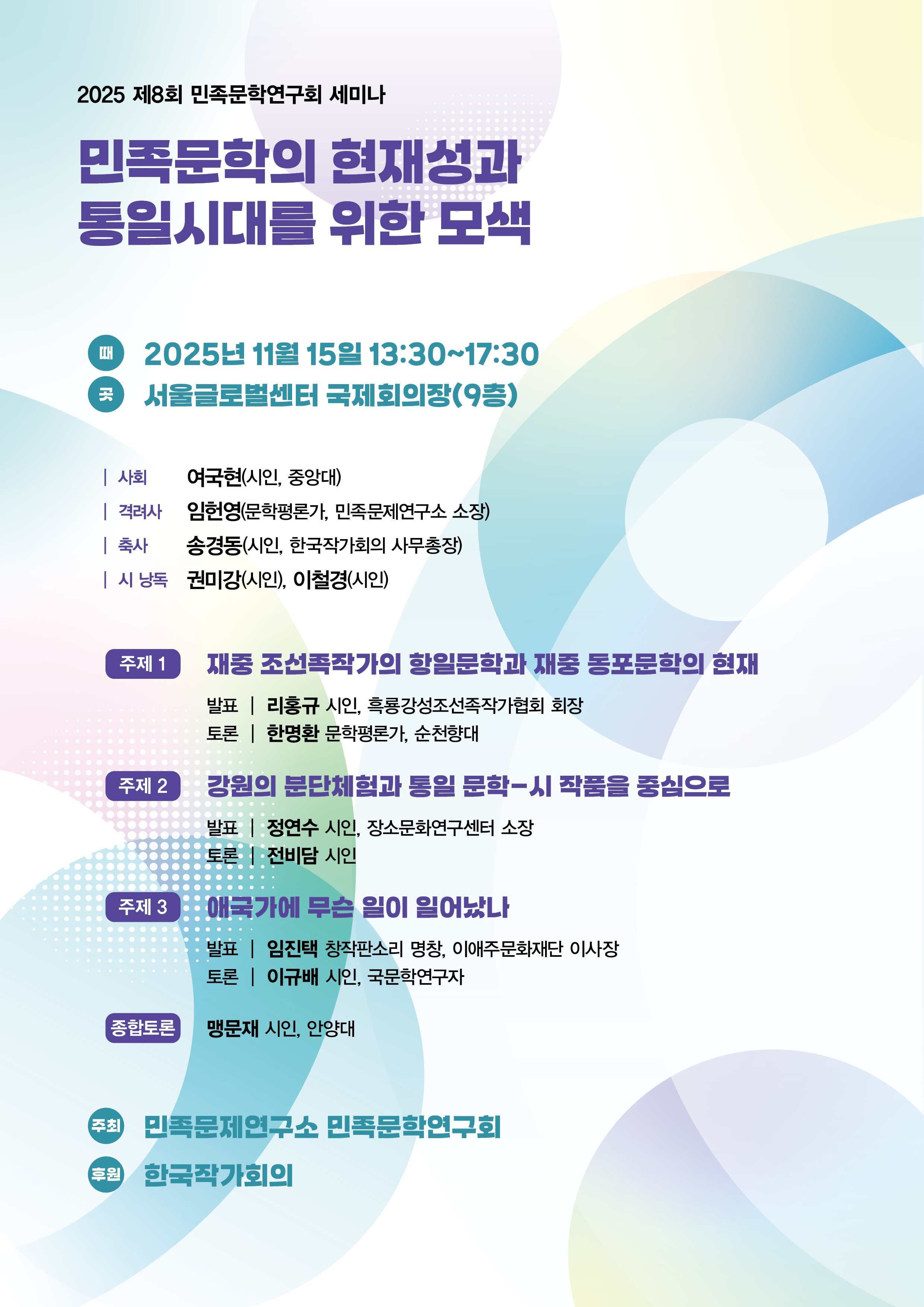 2025 제8회 민족문학연구회 세미나 작성자편집실|작성시간25.11.10|조회수23 목록 댓글 0 글자크기 작게가 글자크기 크게가 다음검색 현재 게시글 추가 기능 열기 북마크 공유하기 신고 센터로 신고 댓글 댓글 0 댓글쓰기 답글쓰기 댓글 리스트