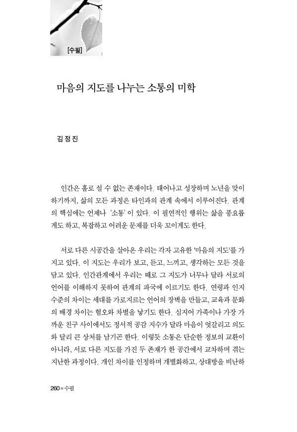 작가연대 19호에 발표된 김정진 수필가의 신작수필입니다. 작성자편집실|작성시간26.02.04|조회수4 목록 댓글 0 글자크기 작게가 글자크기 크게가 다음검색 현재 게시글 추가 기능 열기 북마크 공유하기 신고 센터로 신고 댓글 댓글 0 댓글쓰기 답글쓰기 댓글 리스트