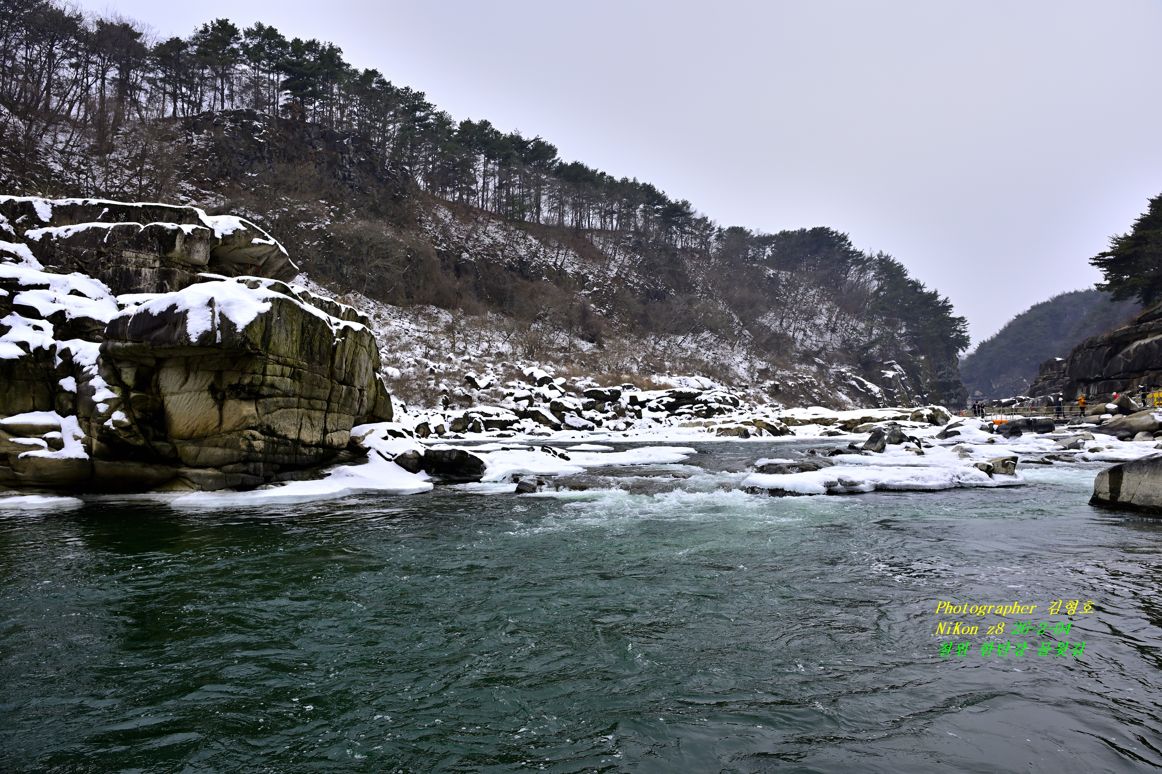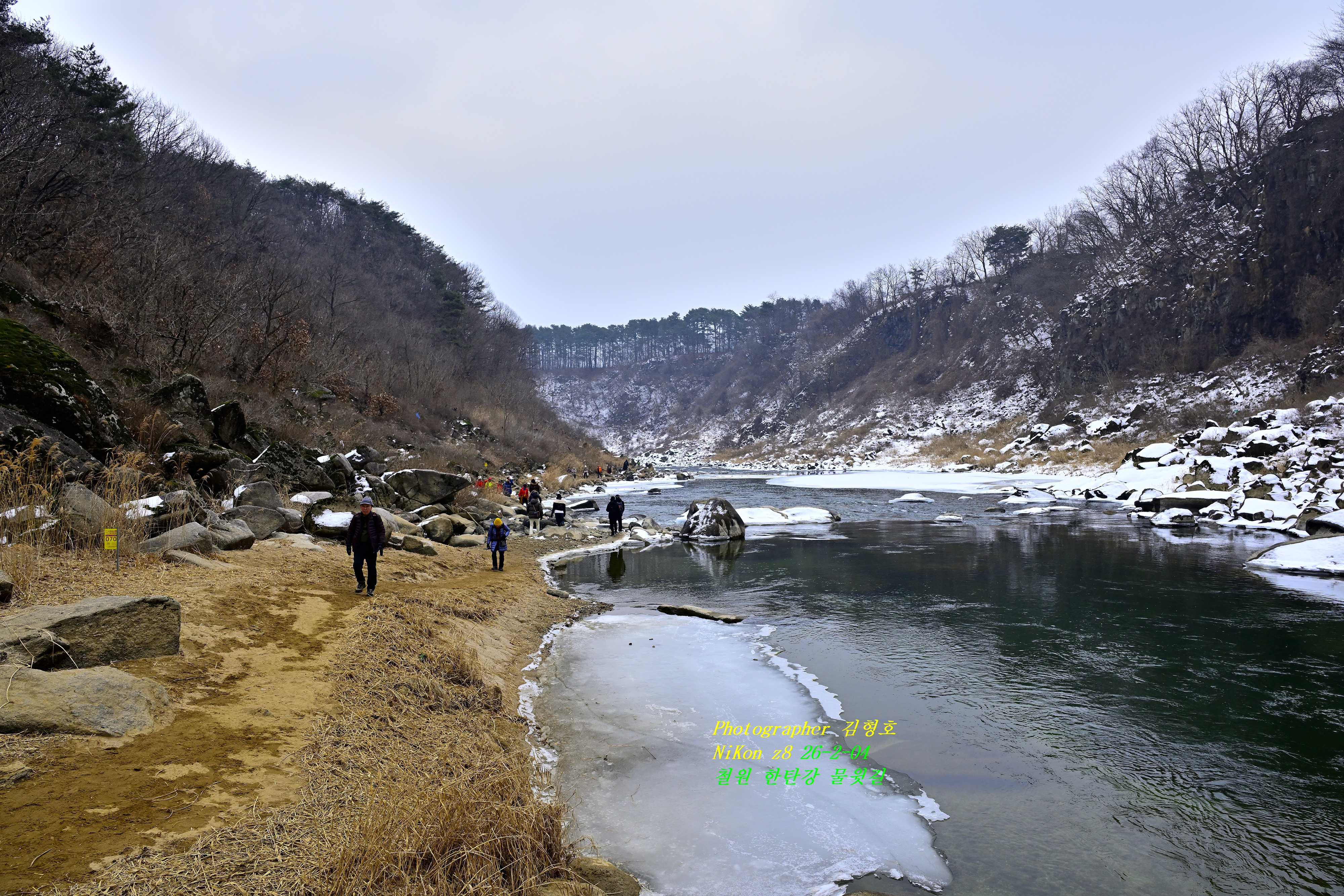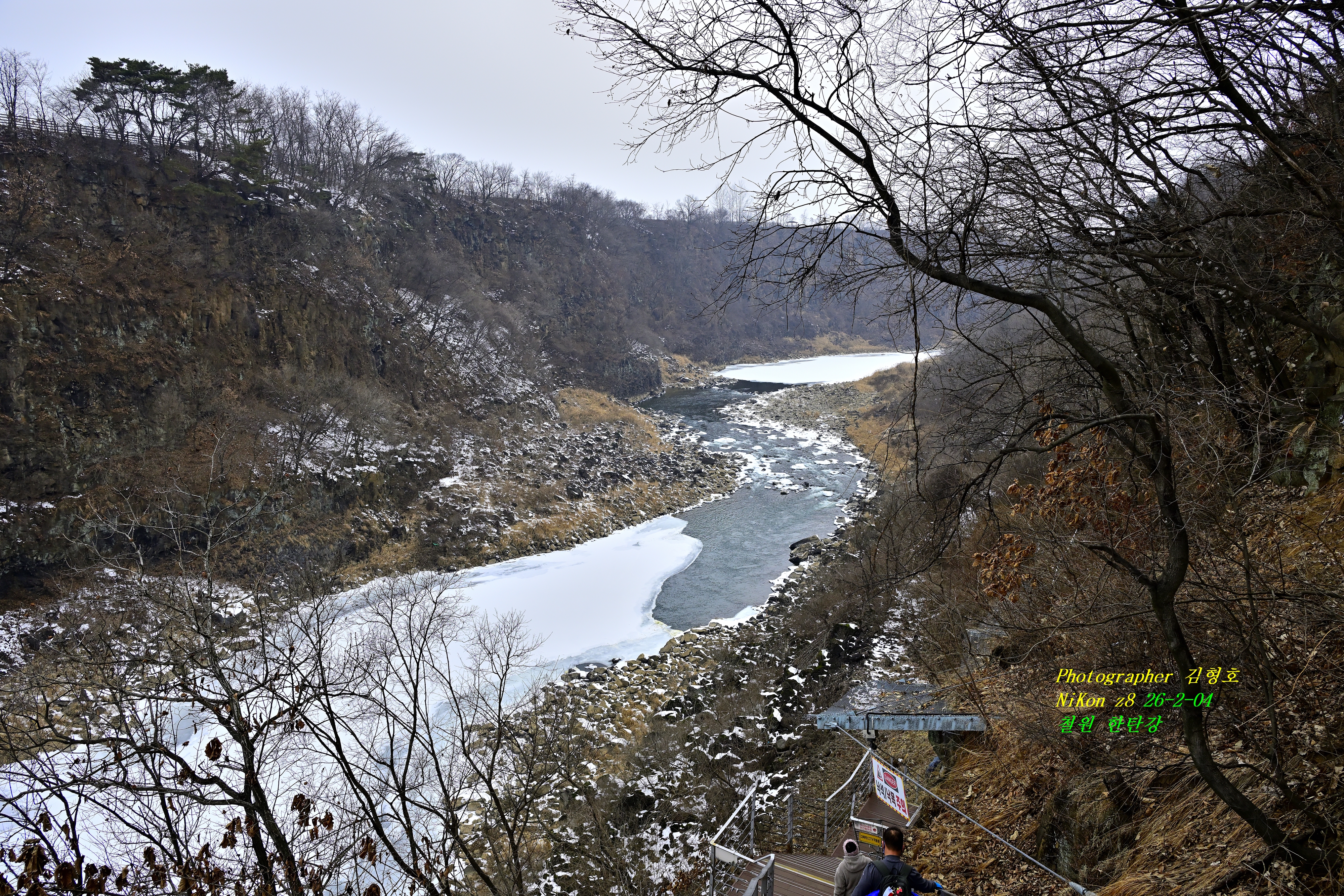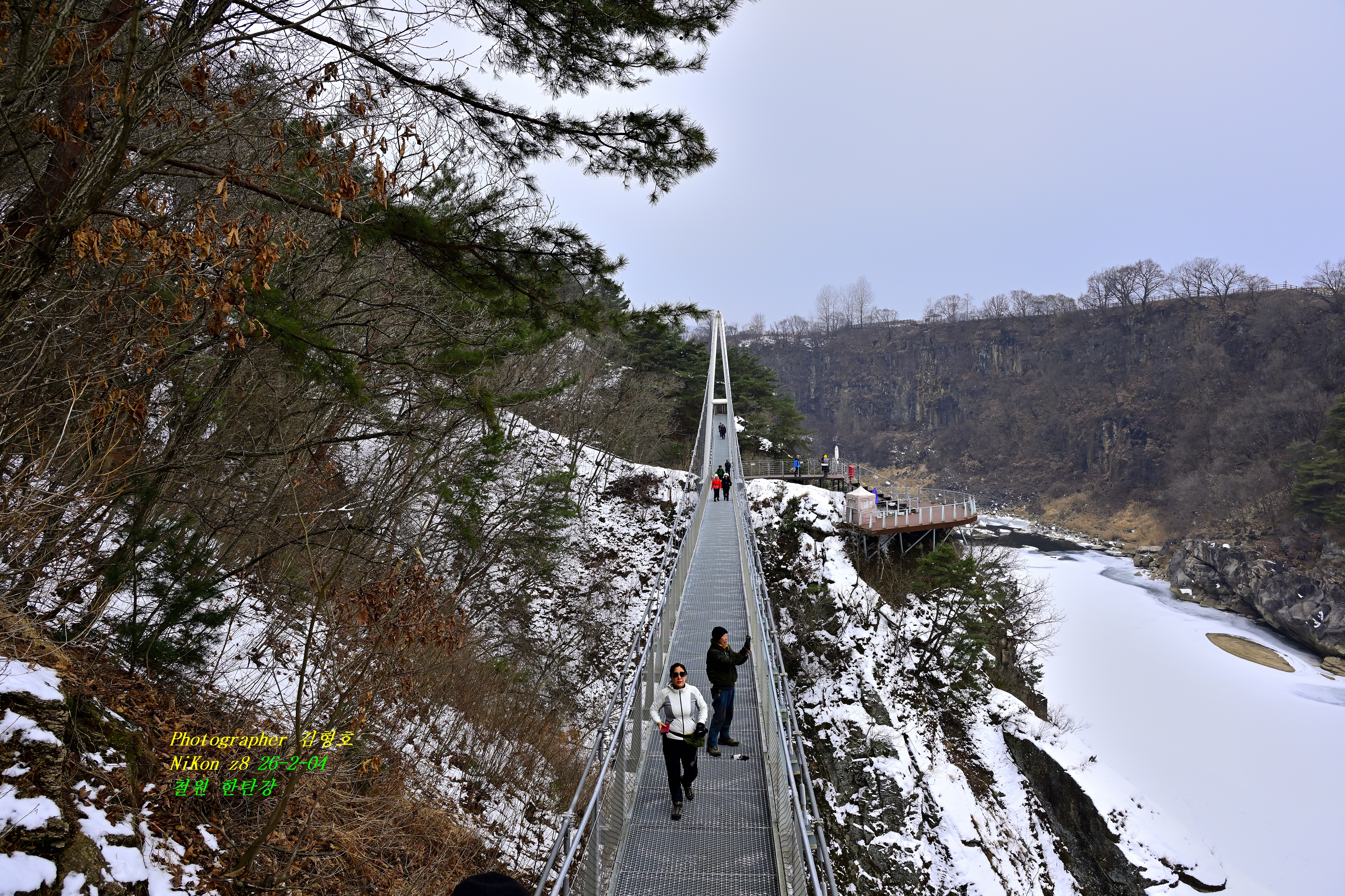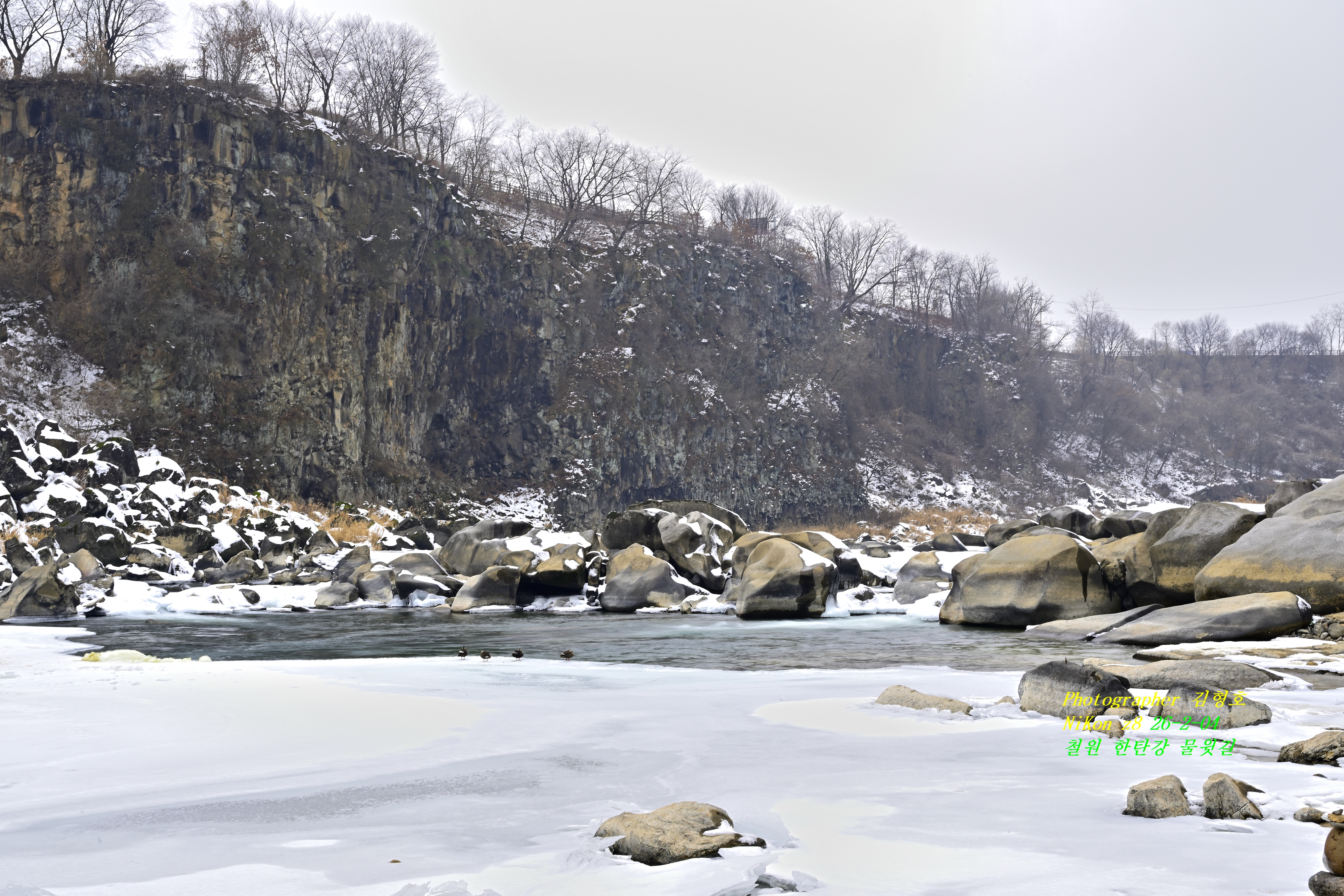 한탄강에 있는 사진가들의 사랑을 받는 직탕폭포에 도착을 한다. 물이 얼어서 폭포의 모습을 볼수가 없을까 좀 걱정을 했는데 다행이도 얼음 보다는 물을 많이 볼 수 가 있어서 다행이라며 ND필터를 끄집어 내어 촬영을 하였다. 오늘 내가 가장 기대 한 곳이 이곳 직탕폭포였다.