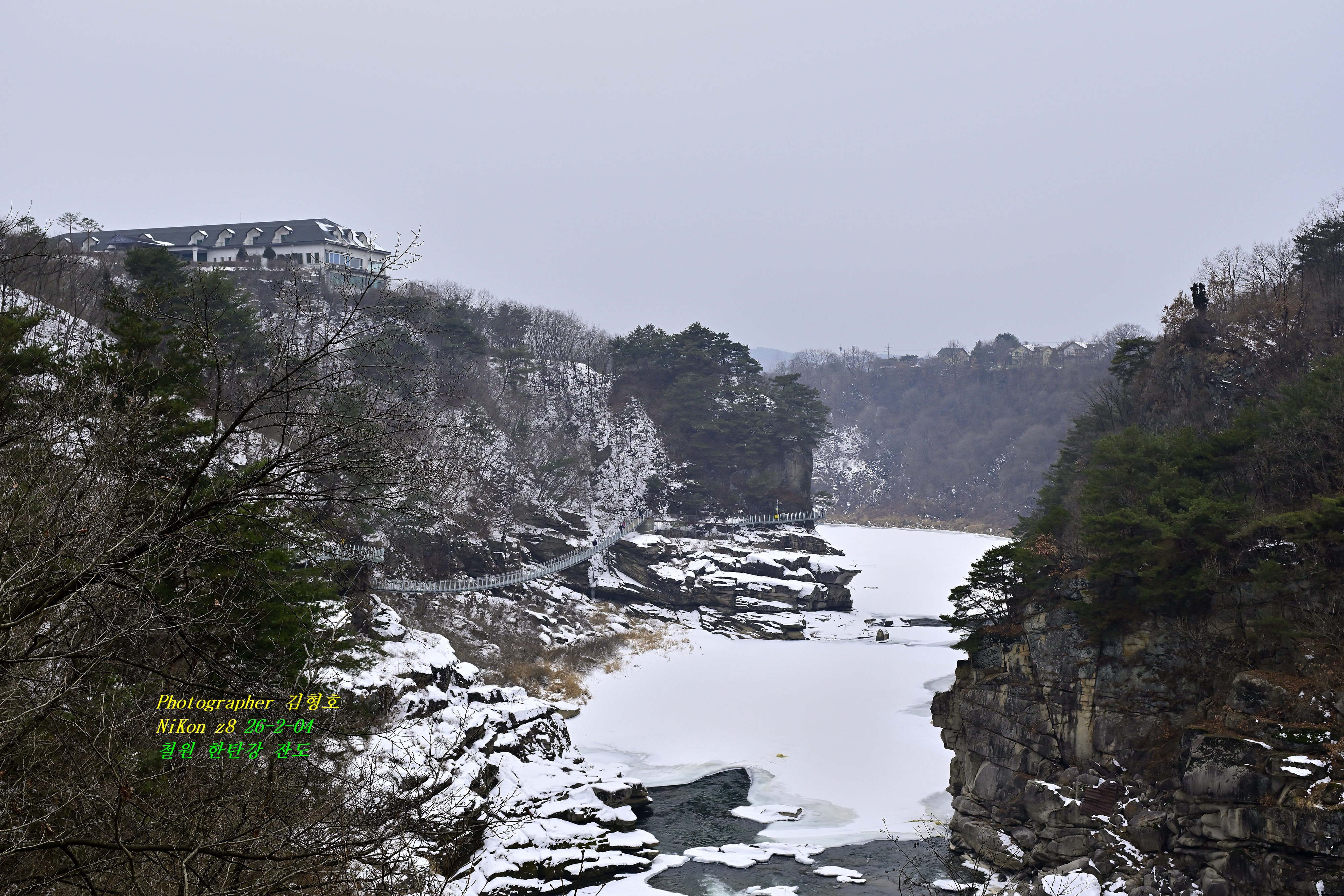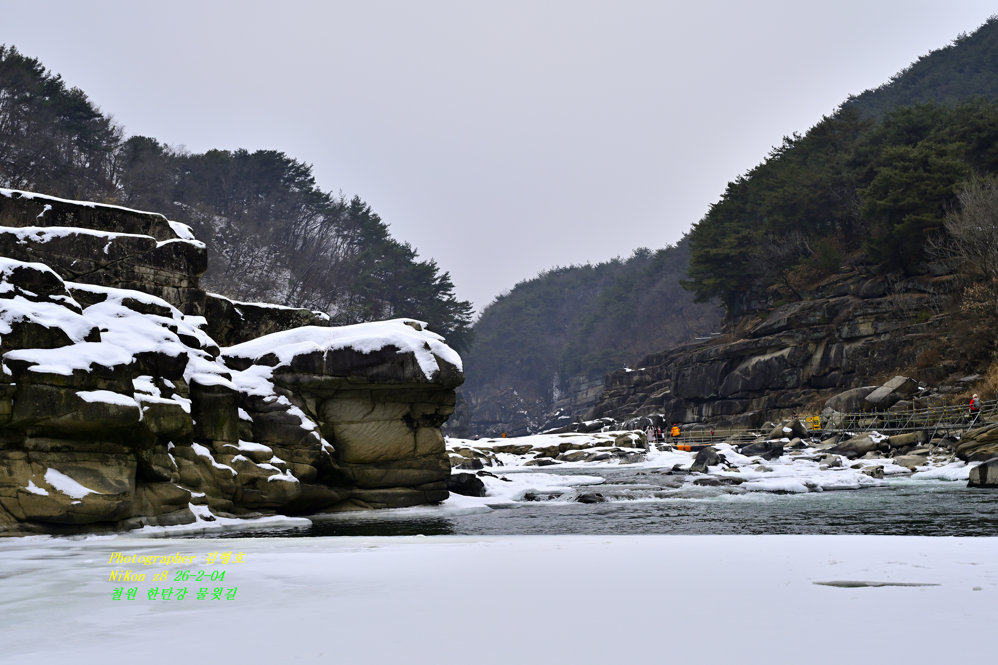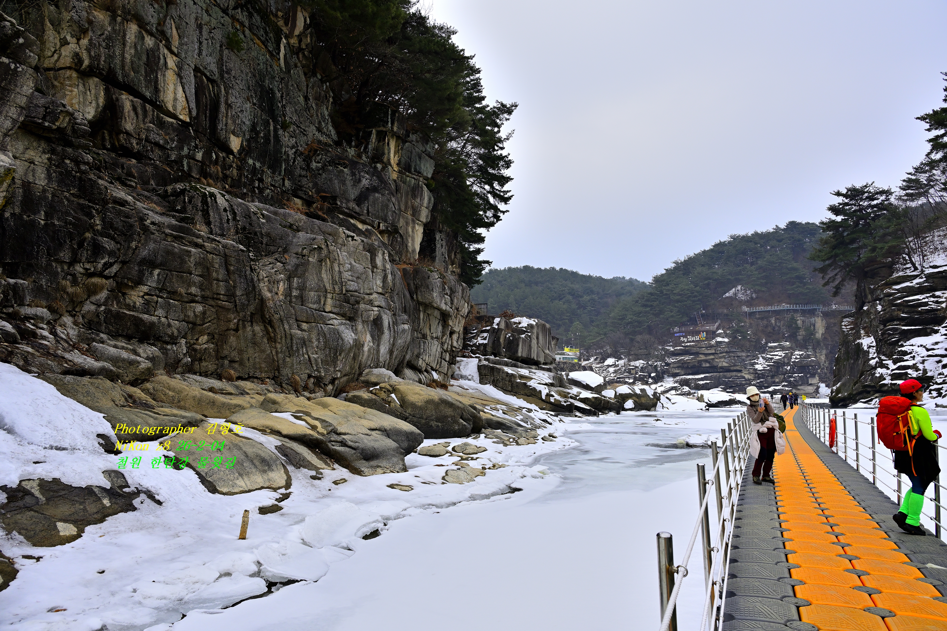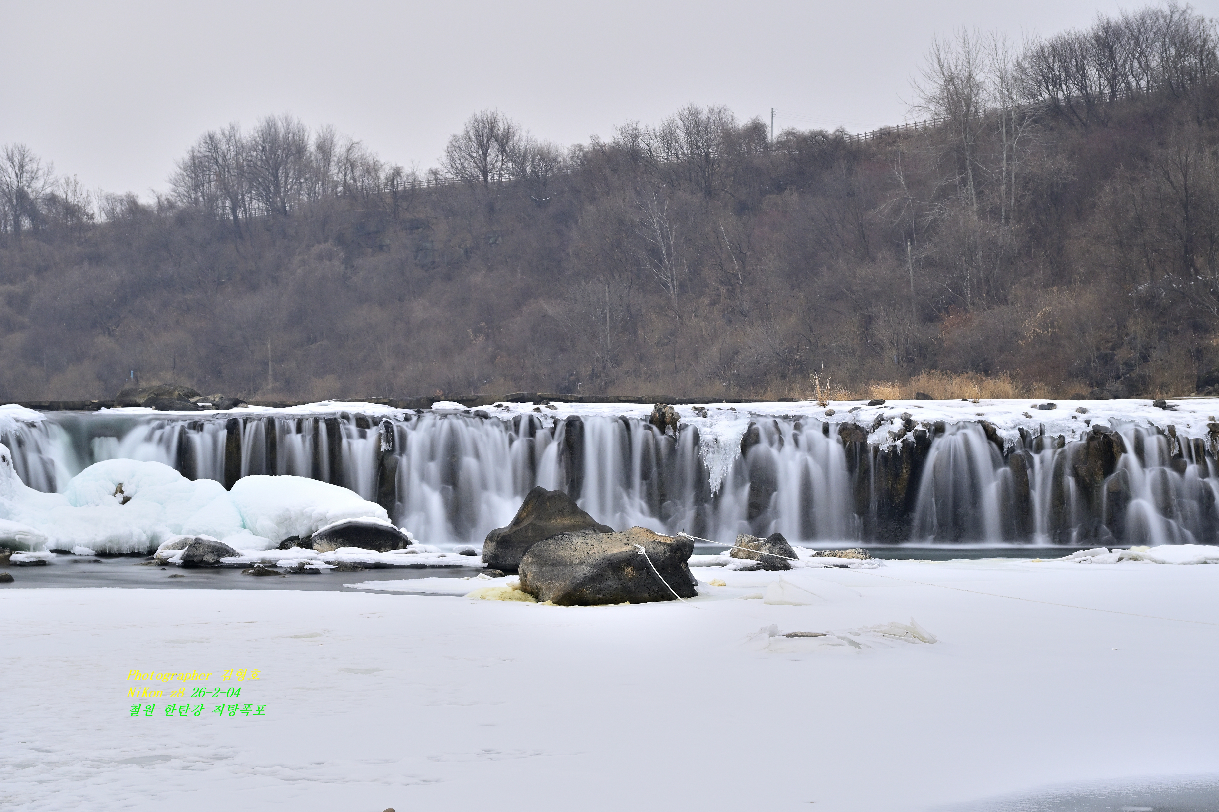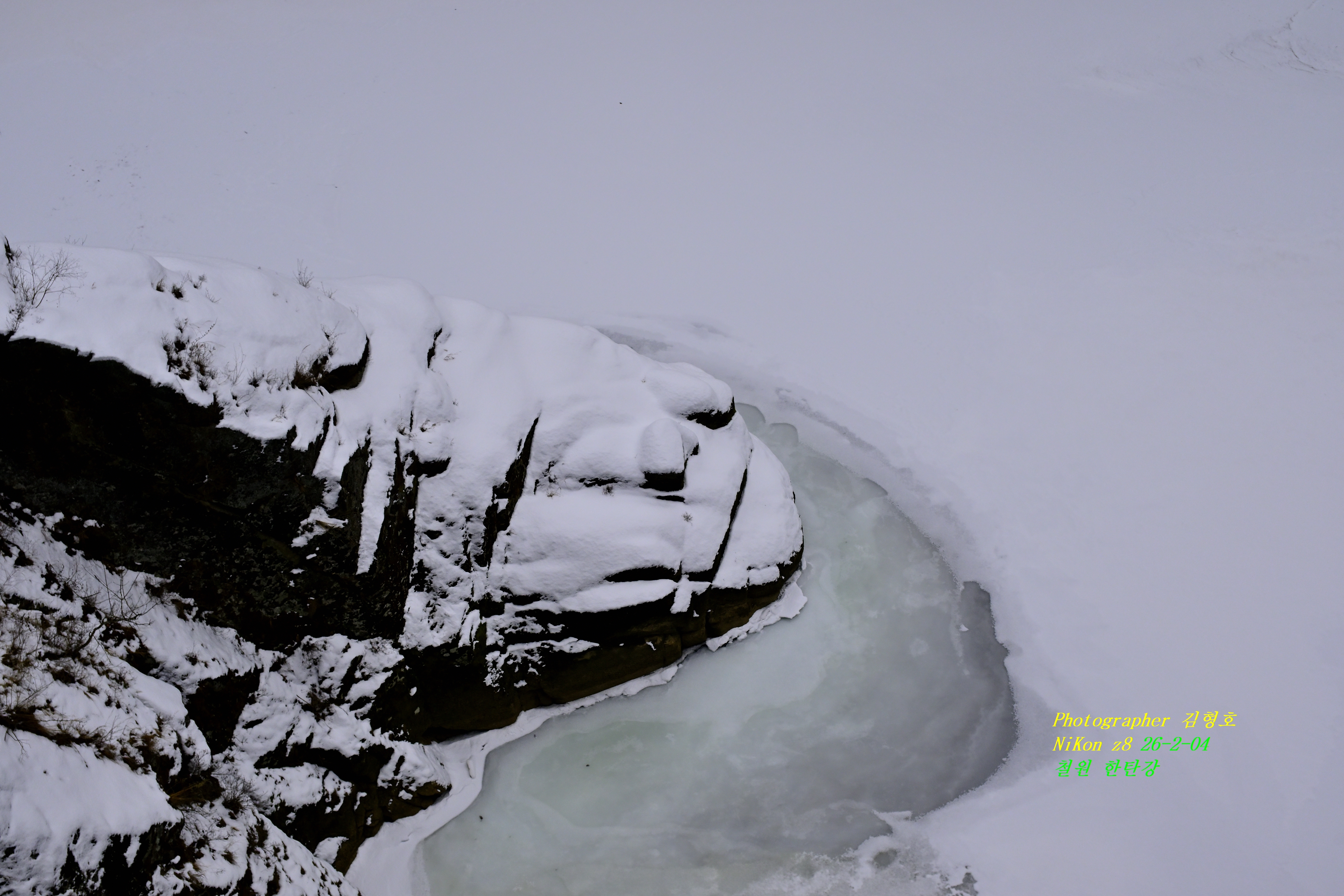 한탄강에 있는 사진가들의 사랑을 받는 직탕폭포에 도착을 한다. 물이 얼어서 폭포의 모습을 볼수가 없을까 좀 걱정을 했는데 다행이도 얼음 보다는 물을 많이 볼 수 가 있어서 다행이라며 ND필터를 끄집어 내어 촬영을 하였다. 오늘 내가 가장 기대 한 곳이 이곳 직탕폭포였다.
