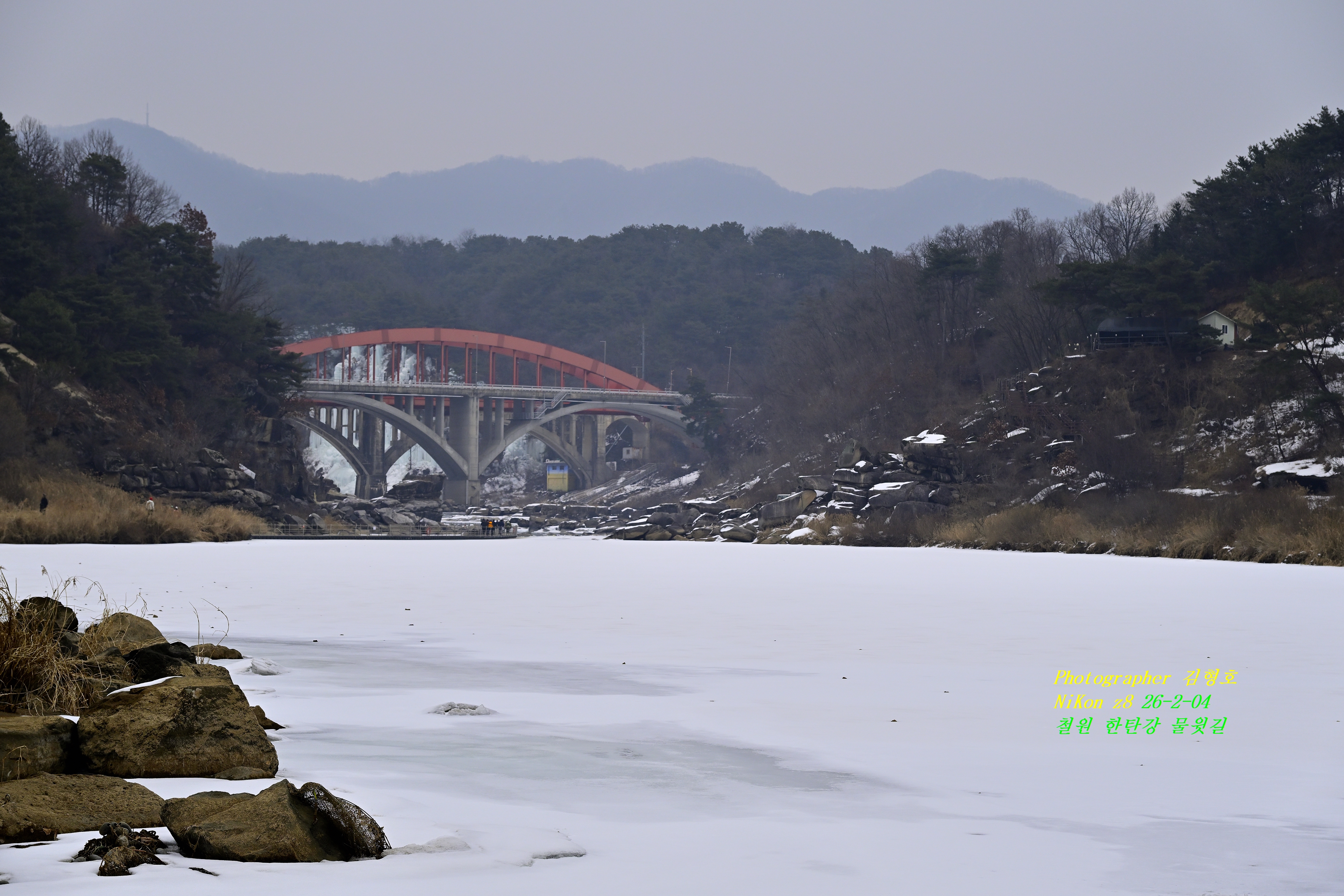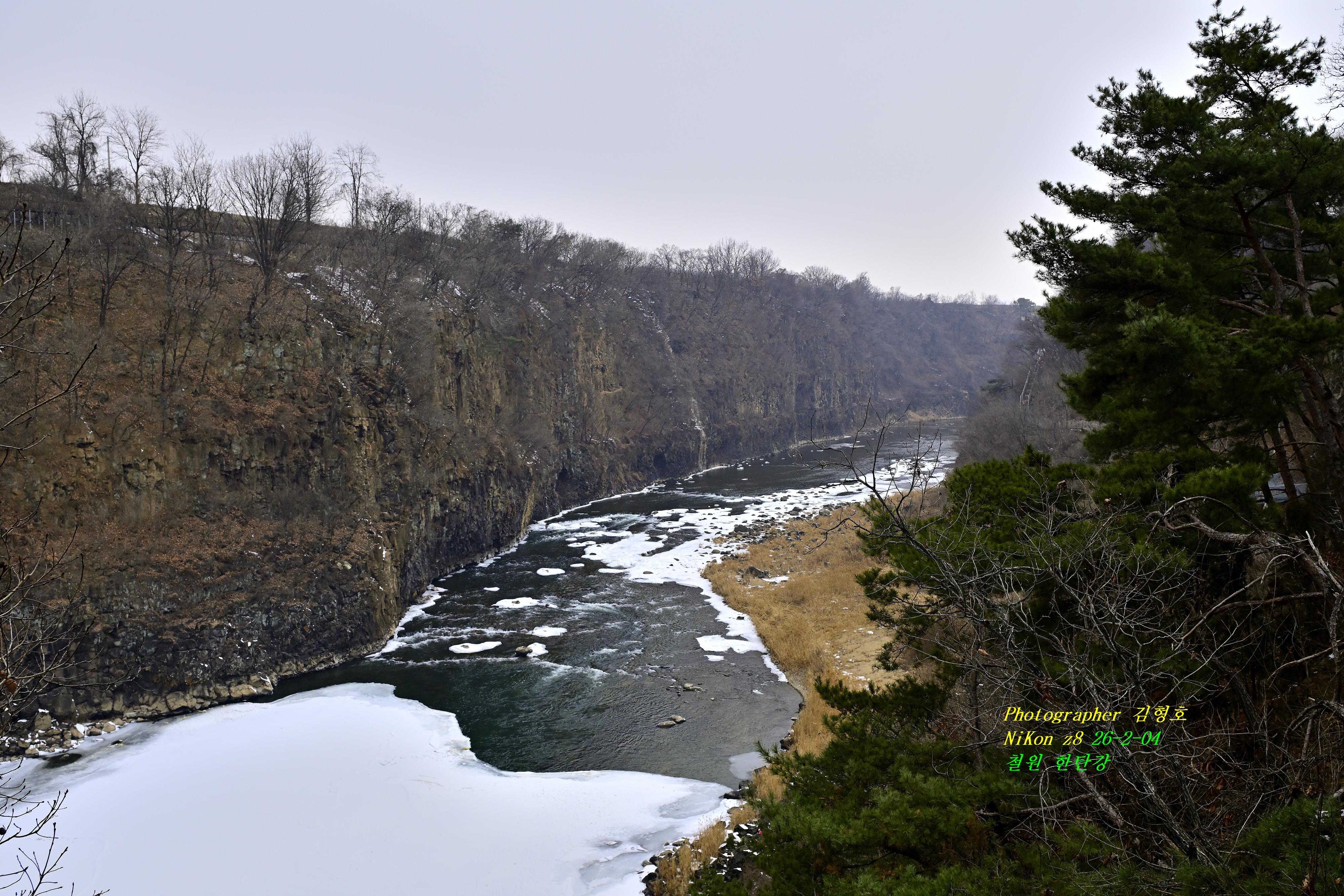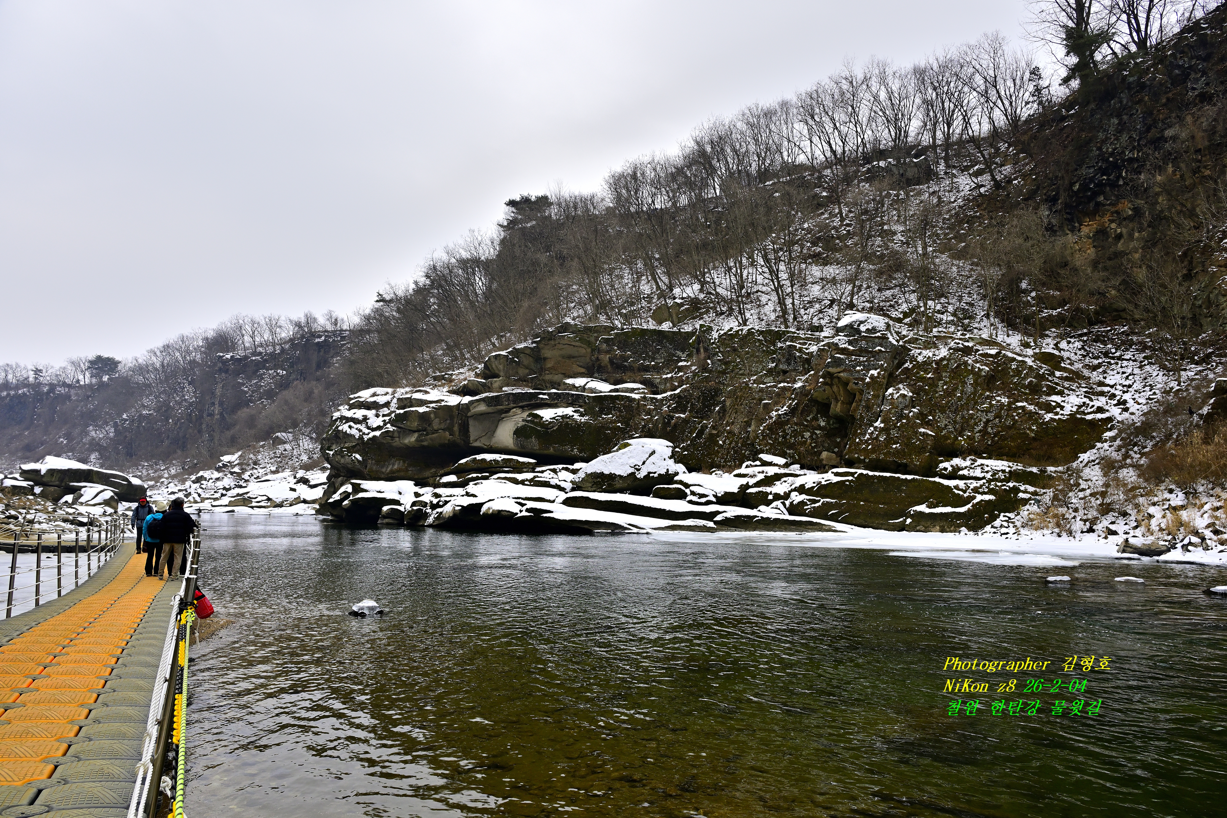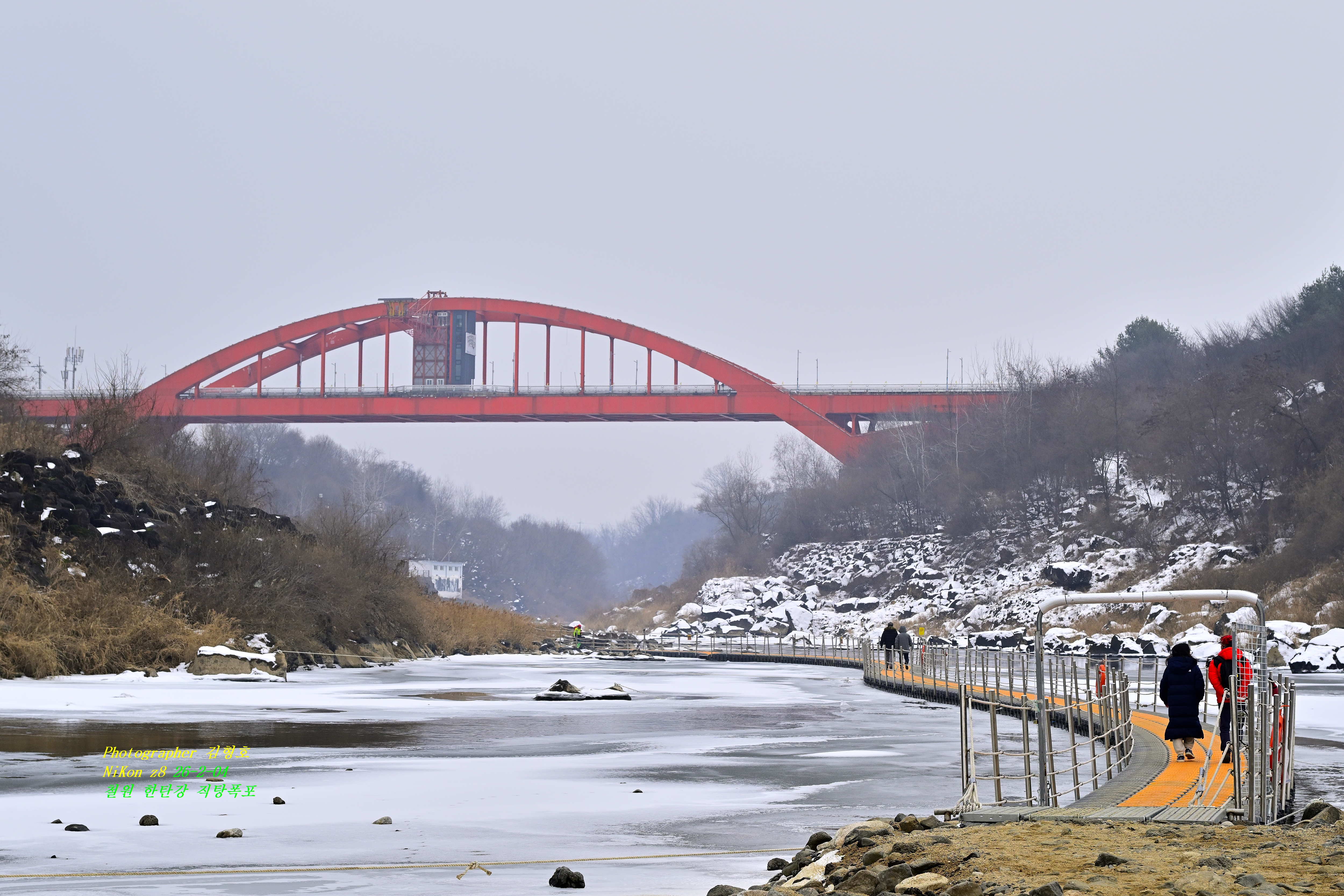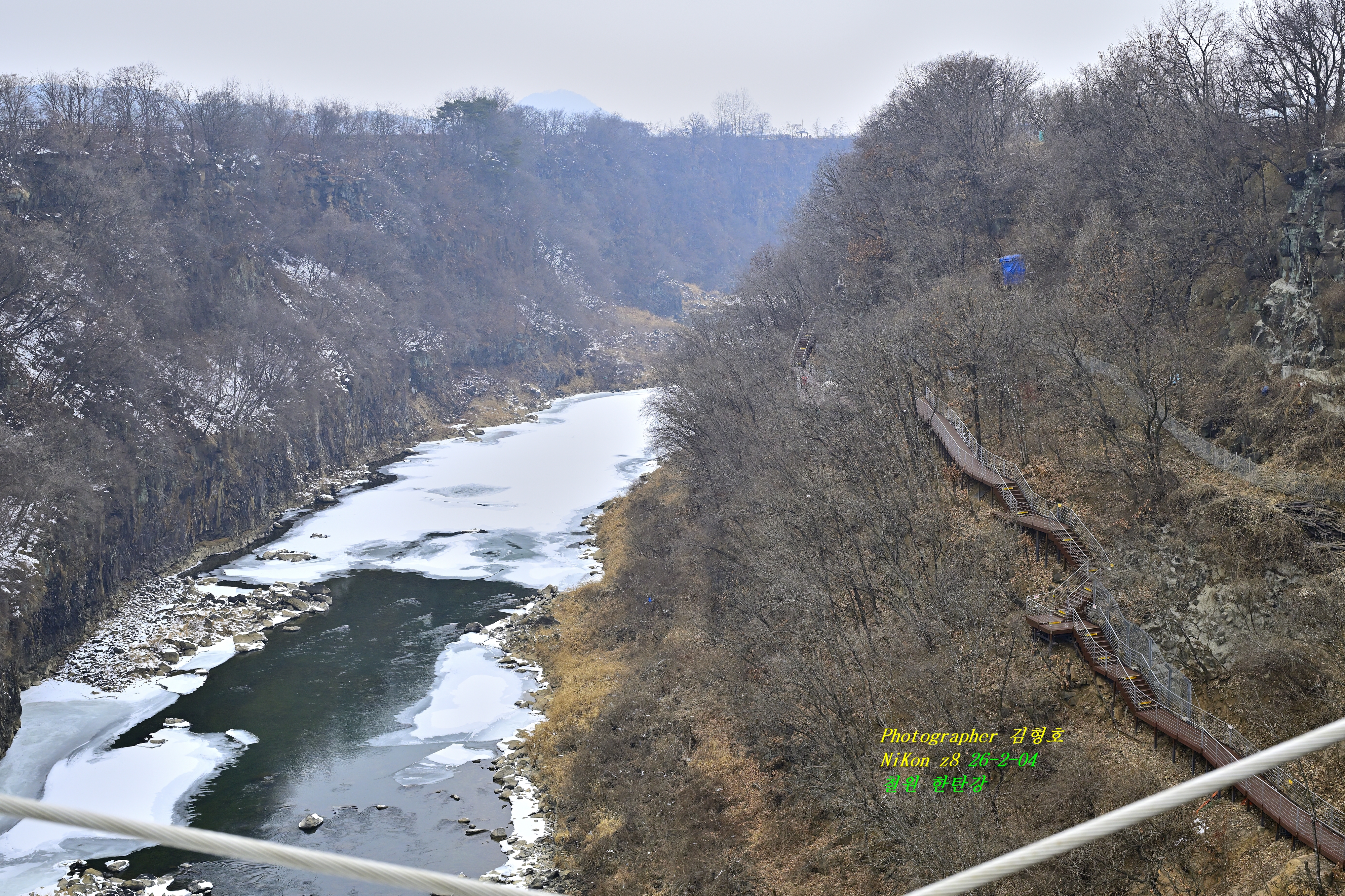 두루미교에서 내려다 본 풍경이다. 나무들은 삭막한 기분이 들지만 얼음들이 한탄강을 덮어 놓은걸 보니 이곳이 마산 하고는 다르다는 느낌이 든다.