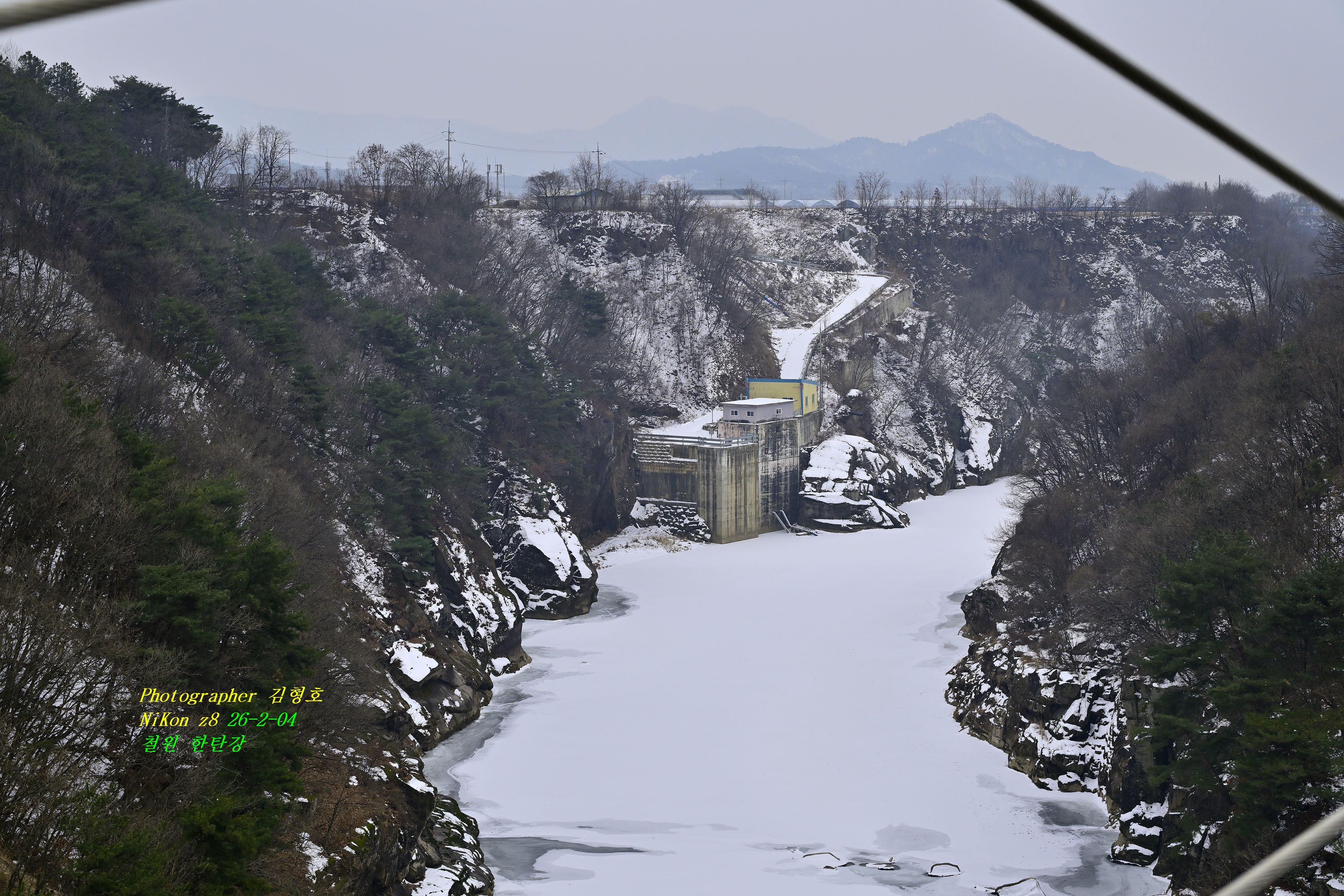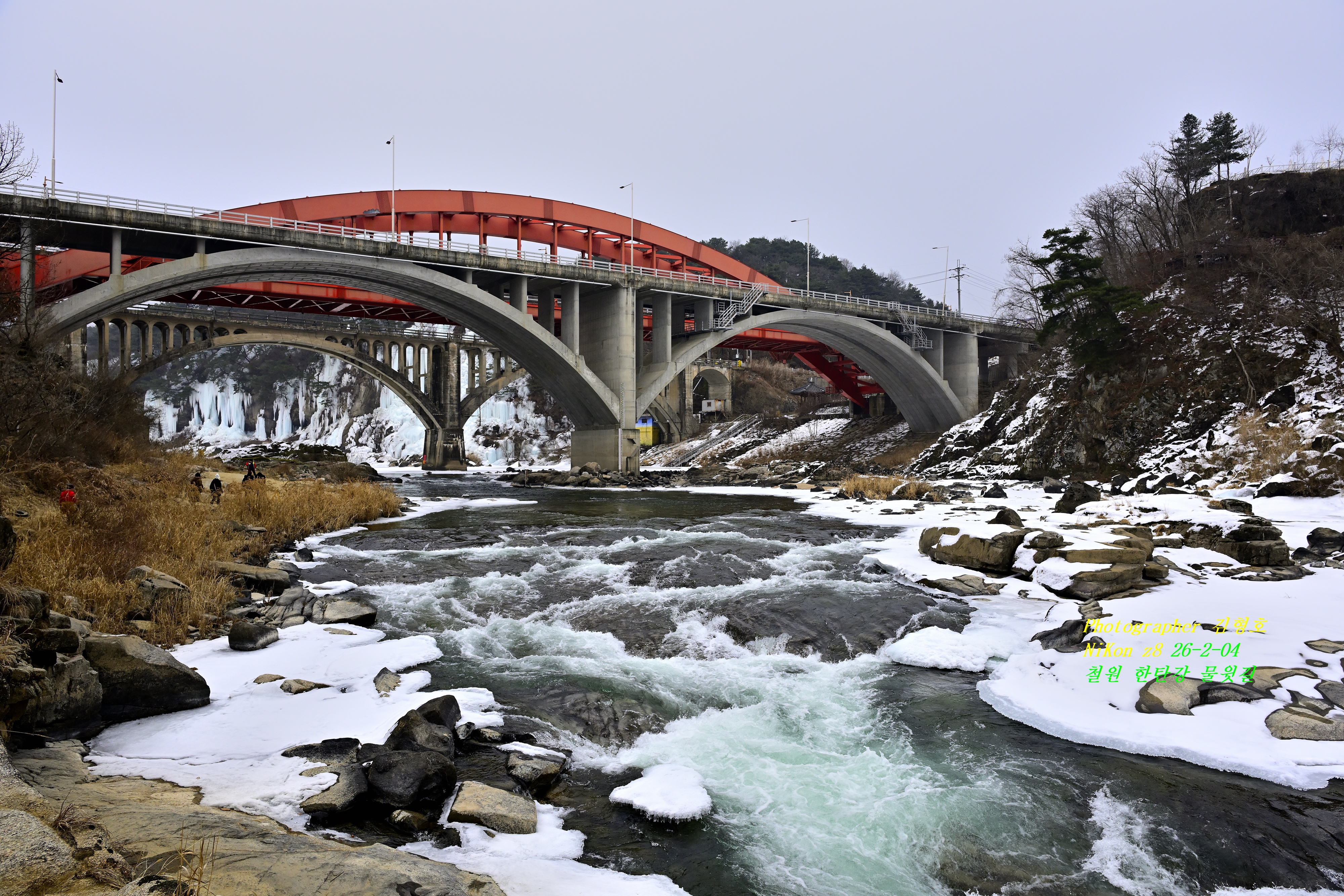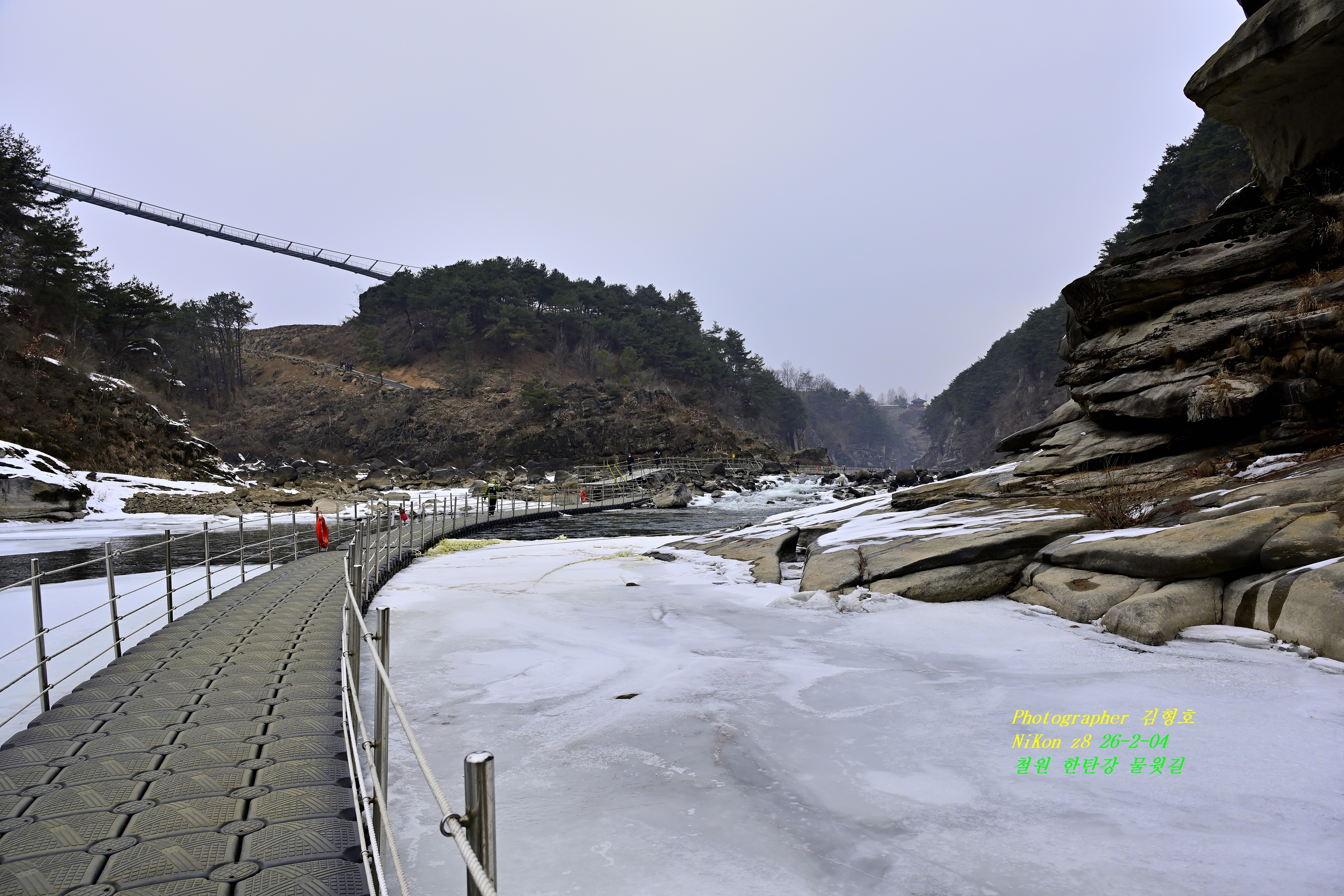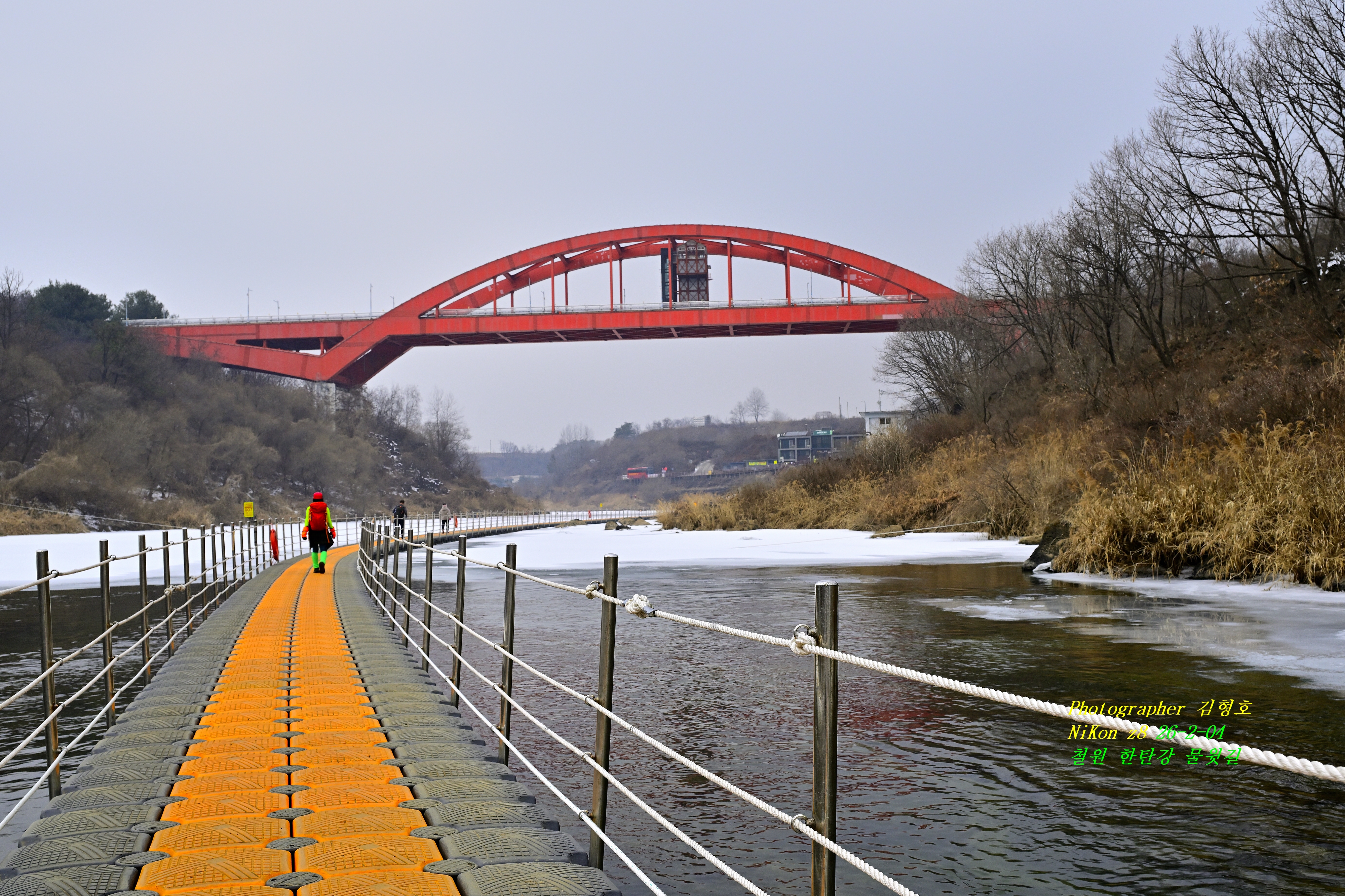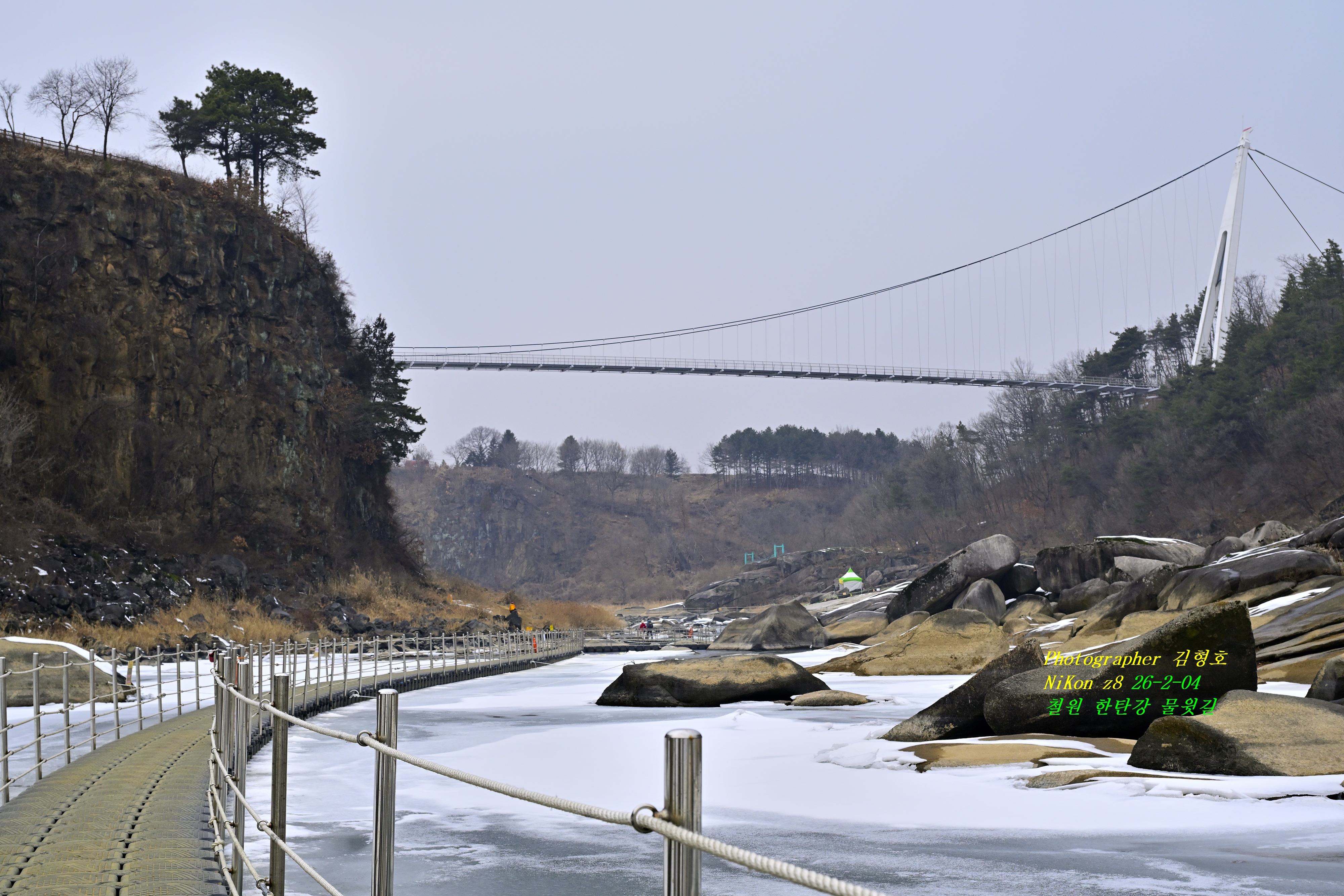 두루미교에서 내려다 본 풍경이다. 나무들은 삭막한 기분이 들지만 얼음들이 한탄강을 덮어 놓은걸 보니 이곳이 마산 하고는 다르다는 느낌이 든다.