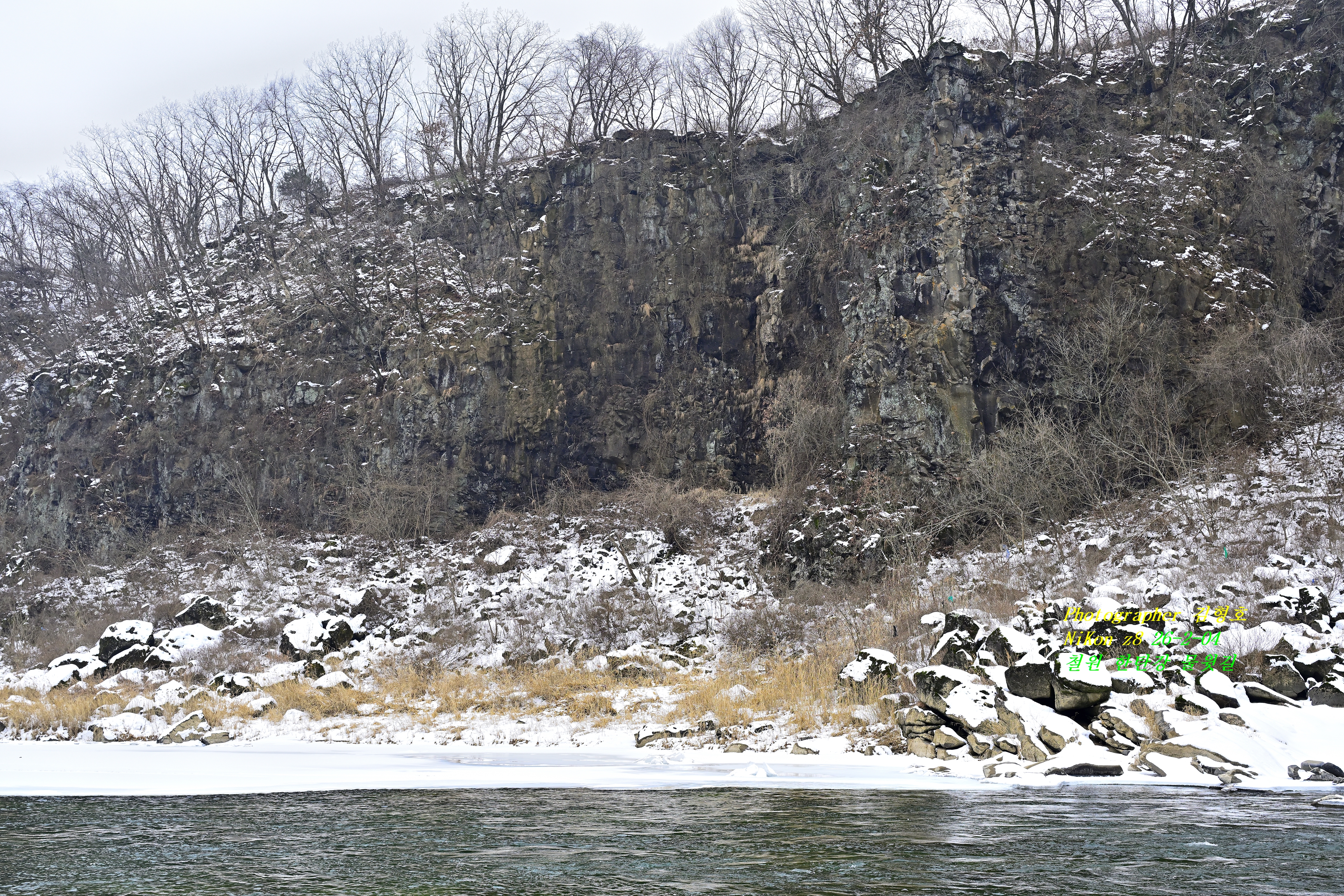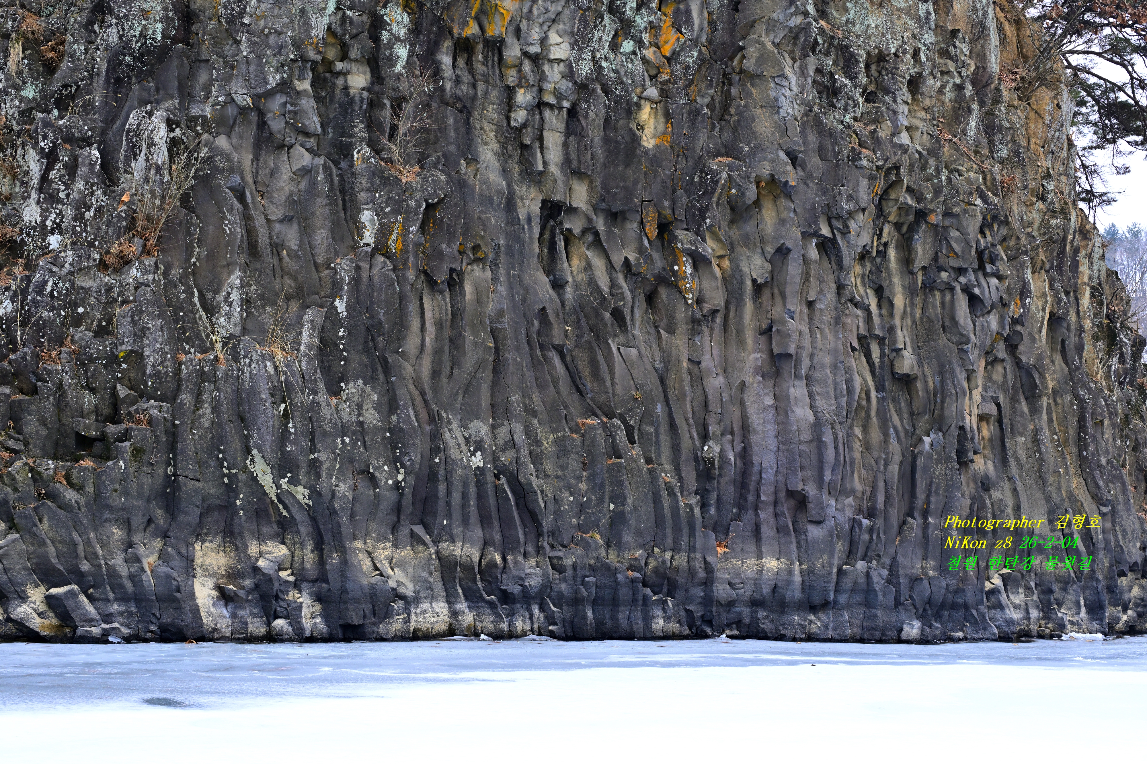 강 왼쪽의 절벽들은 모두 주상절리로 이루어진 바위들이다.